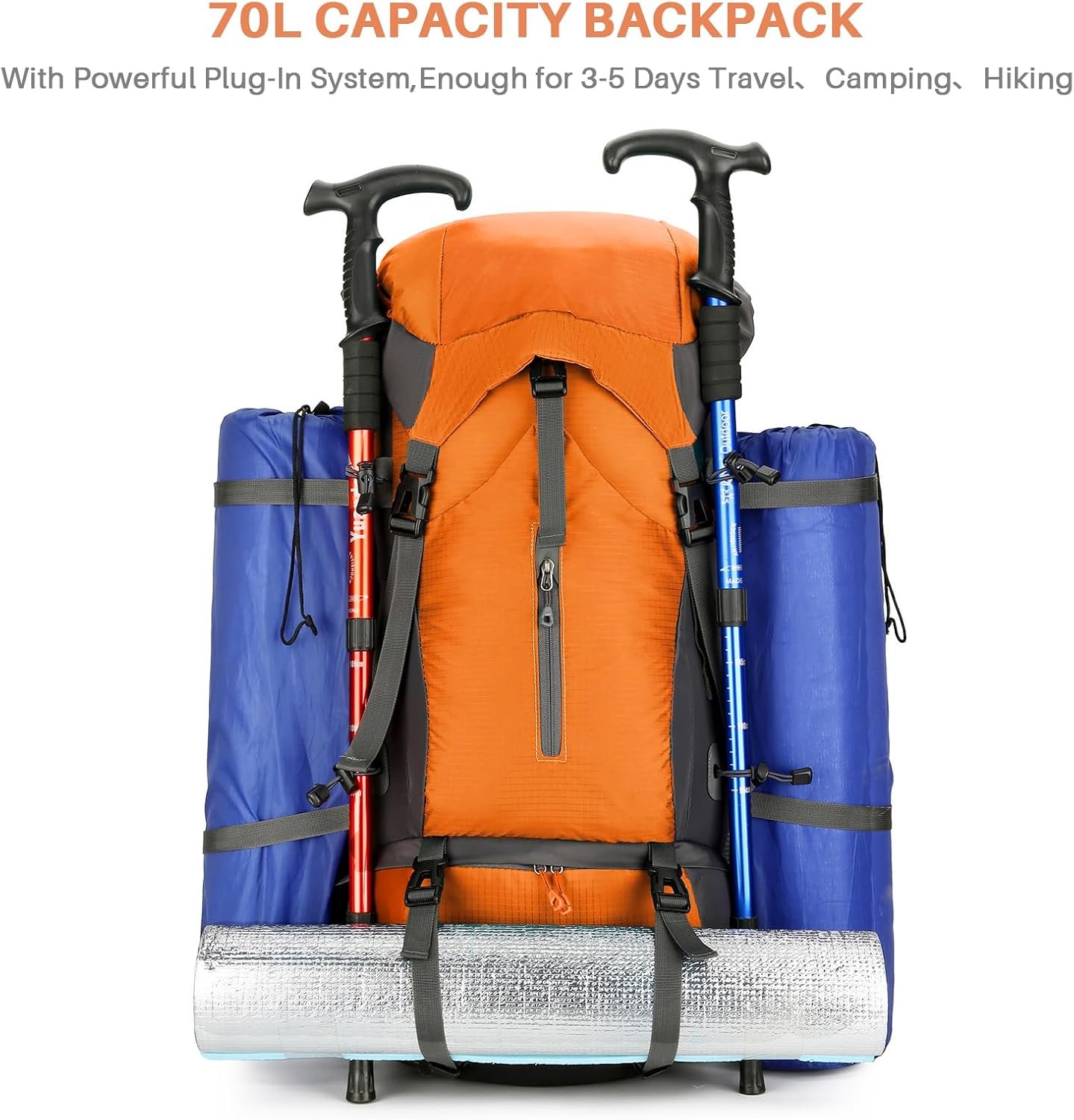 【Big Waterproof Backpack with Rain Cover】: Be prepared for unexpected downpours with the easily deployable Rain cover conveniently stored in the bottom zippered compartment. 𝟕𝟎𝐥 𝐡𝐢𝐤𝐢𝐧𝐠 𝐛𝐚𝐜𝐤𝐩𝐚𝐜𝐤 𝐰𝐚𝐭𝐞𝐫𝐩𝐫𝐨𝐨𝐟 𝐰𝐢𝐭𝐡 𝐫𝐚𝐢𝐧 𝐜𝐨𝐯𝐞𝐫 with rain cover and a separate shoe compartment.70 l with hip pockets and a chest strap.
