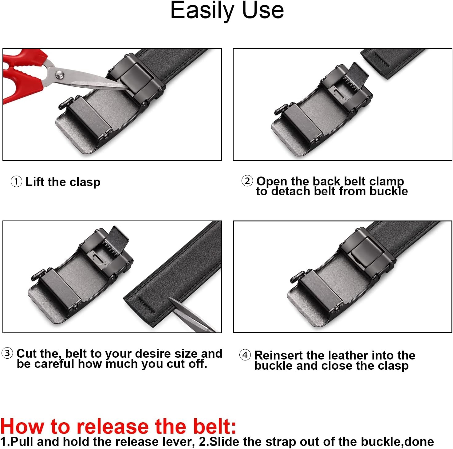 SENDEFN Men’s Leather Belt Automatic Ratchet Buckle Slide Belt for Dress Casual Trim to Fit with Gift Box
