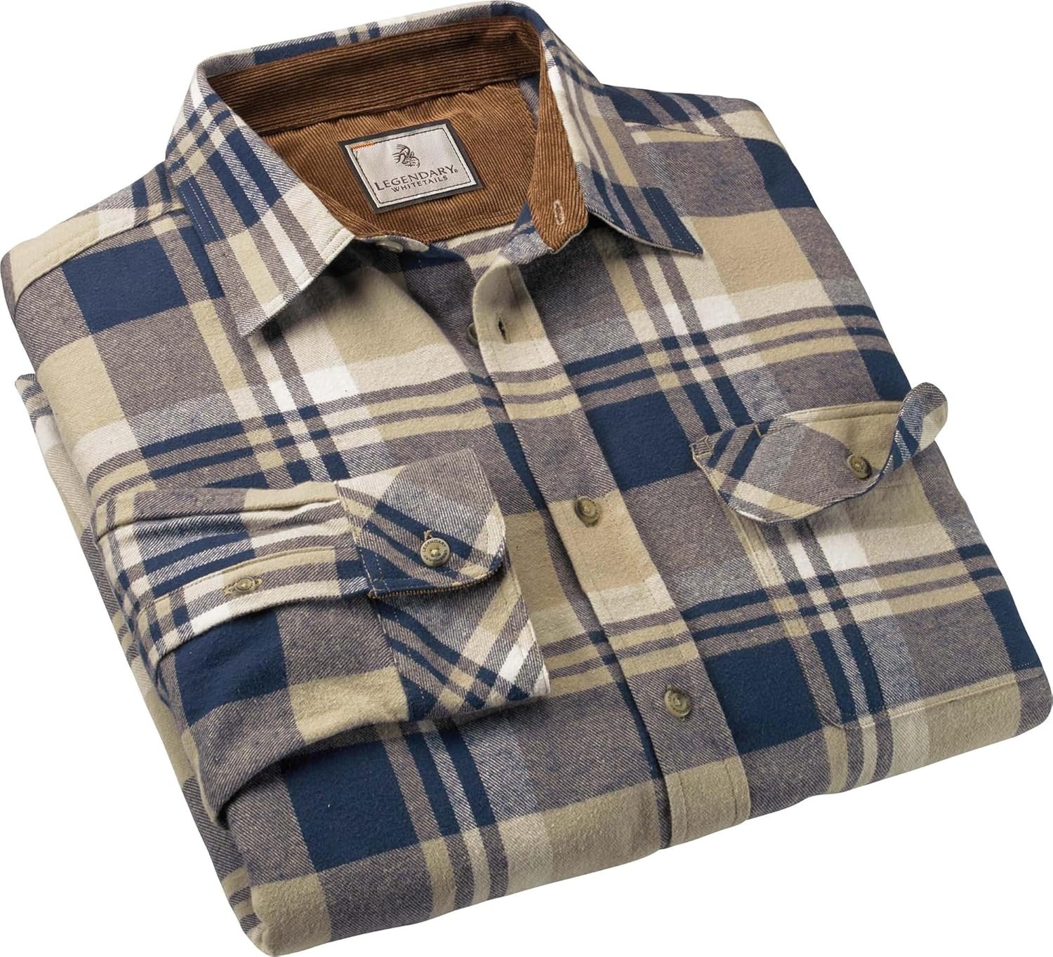 Legendary Whitetails Men’s Buck Camp Flannel, Long Sleeve Plaid Button Down Casual Shirt, Corduroy Cuffs