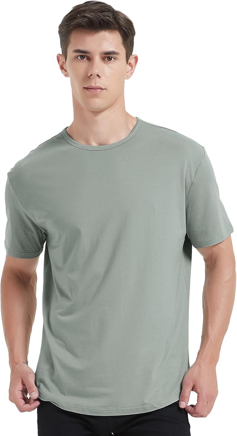 netdraw Men’s Ultra Soft Bamboo Viscose T-Shirt Curve Hem Lightweight Cooling Short/Long Sleeve Casual Basic Tee Shirt