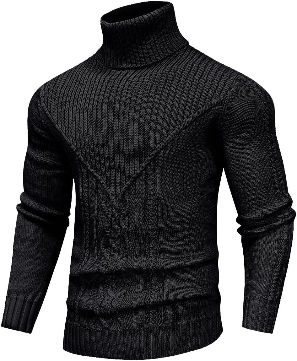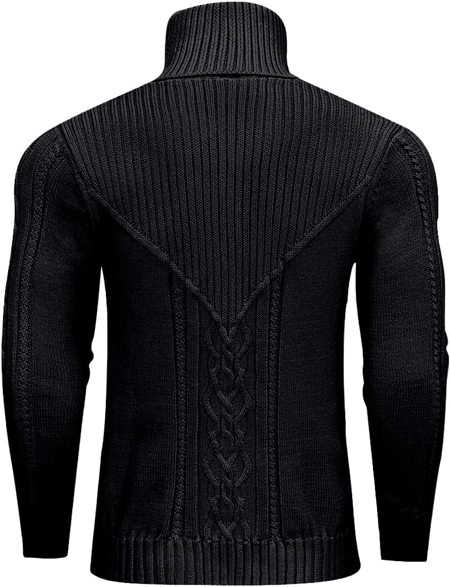 Men’s Turtleneck Sweater Cable Knitted Pullover Sweater