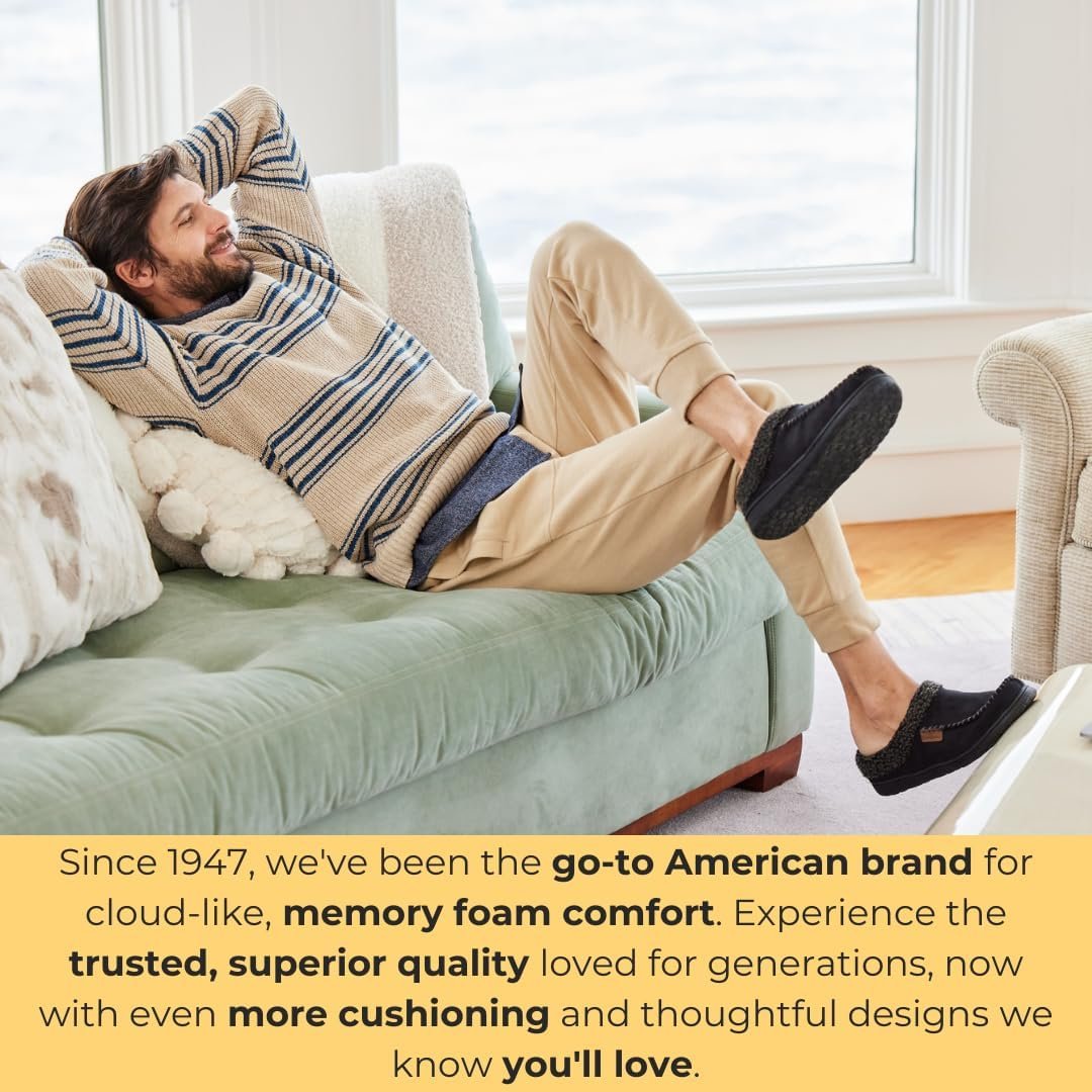Dearfoams Mens Indoor/Outdoor Breathable Memory Foam Brendan Clog House Shoe Slipper with Wide Widths