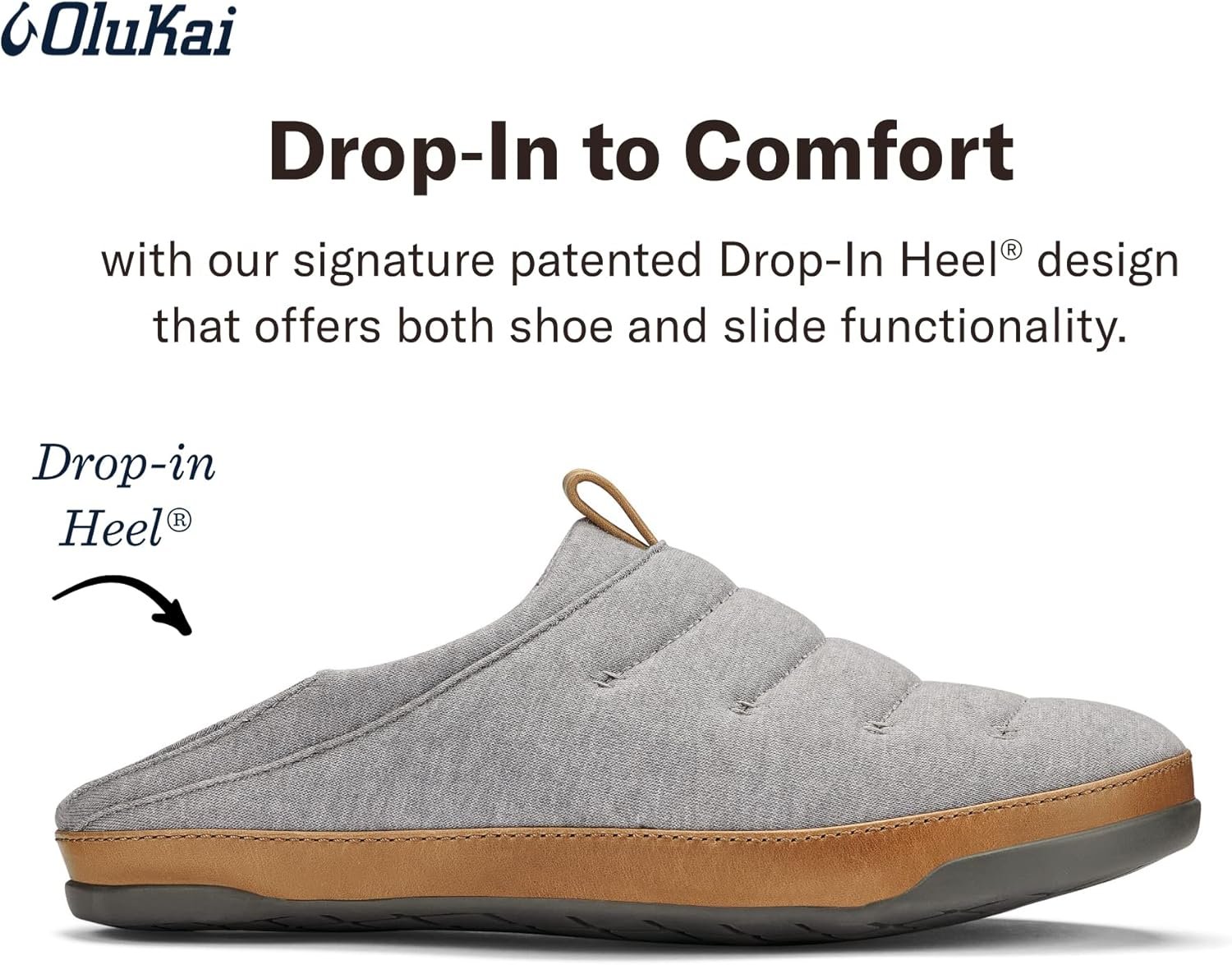 OluKai Mahana Men’s Soft Cotton Slippers, Cotton Blended Jersey & Full-Grain Leather Pull Loop, Comfortable & Breathable Fit