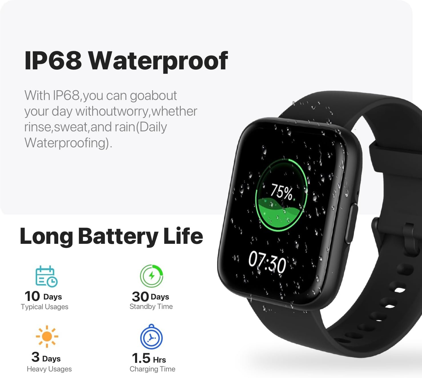 REMARKABLE DURABILITY — Equipped with a powerful 300mAh battery and energy-efficient Bluetooth v5.3 chip, this watch delivers 10 days of typical use, long standby time of 30 days, and 3 days of Bluetooth Calling. Whether you’re conquering workouts, exploring the outdoors, or simply staying connected, this smartwatch won’t let you down.
