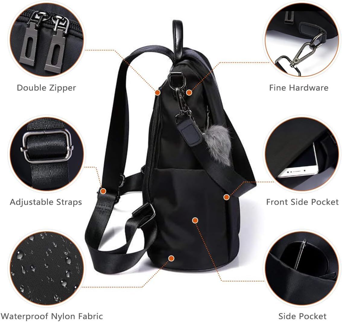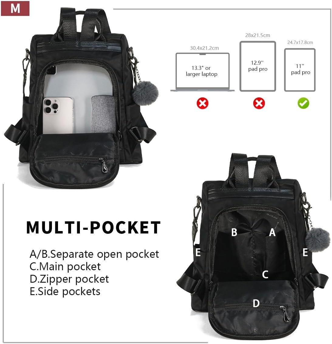 PINCNEL Women Backpack Purse Waterproof Nylon Anti-theft Rucksack Lightweight Shoulder Bag