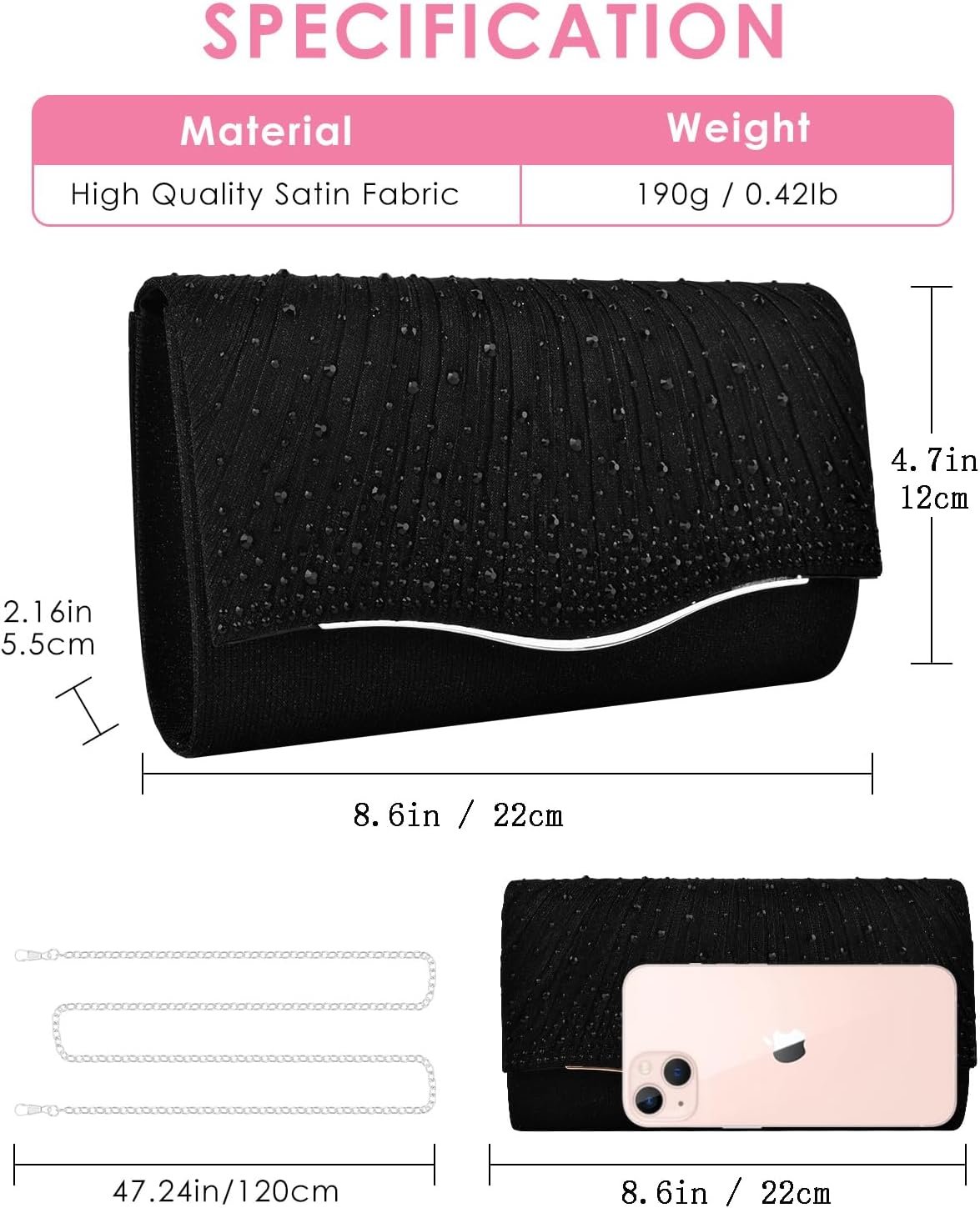 Customers love the handbag’s sparkle and appreciate its size, noting it’s big enough to fit an iPhone. They find it well-made, with one customer mentioning it doesn’t look like cheap material, and consider it good value for money. They like its versatility, with one customer noting it can be used as both a clutch and shoulder bag, while another appreciates the chain strap’s length.