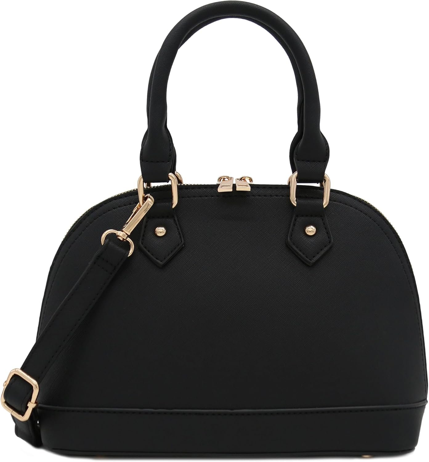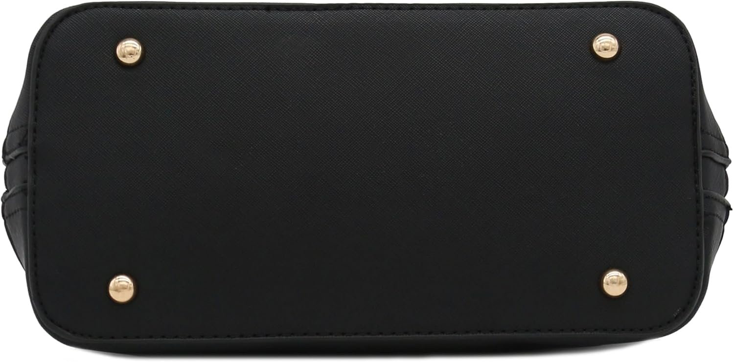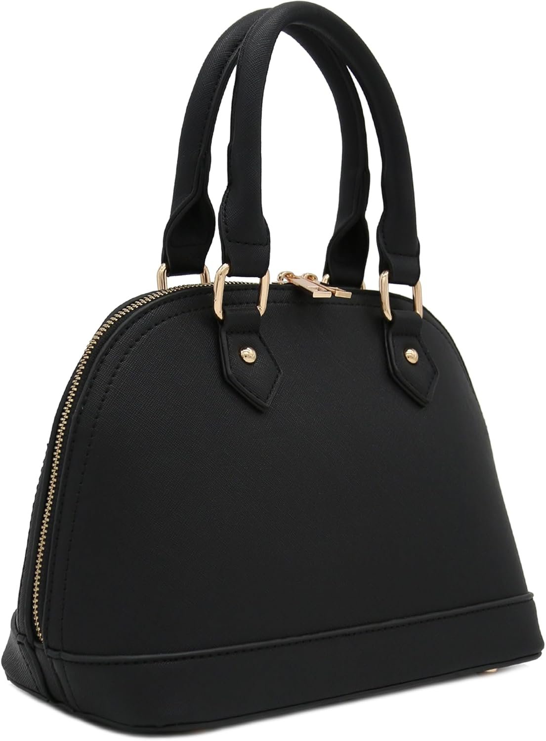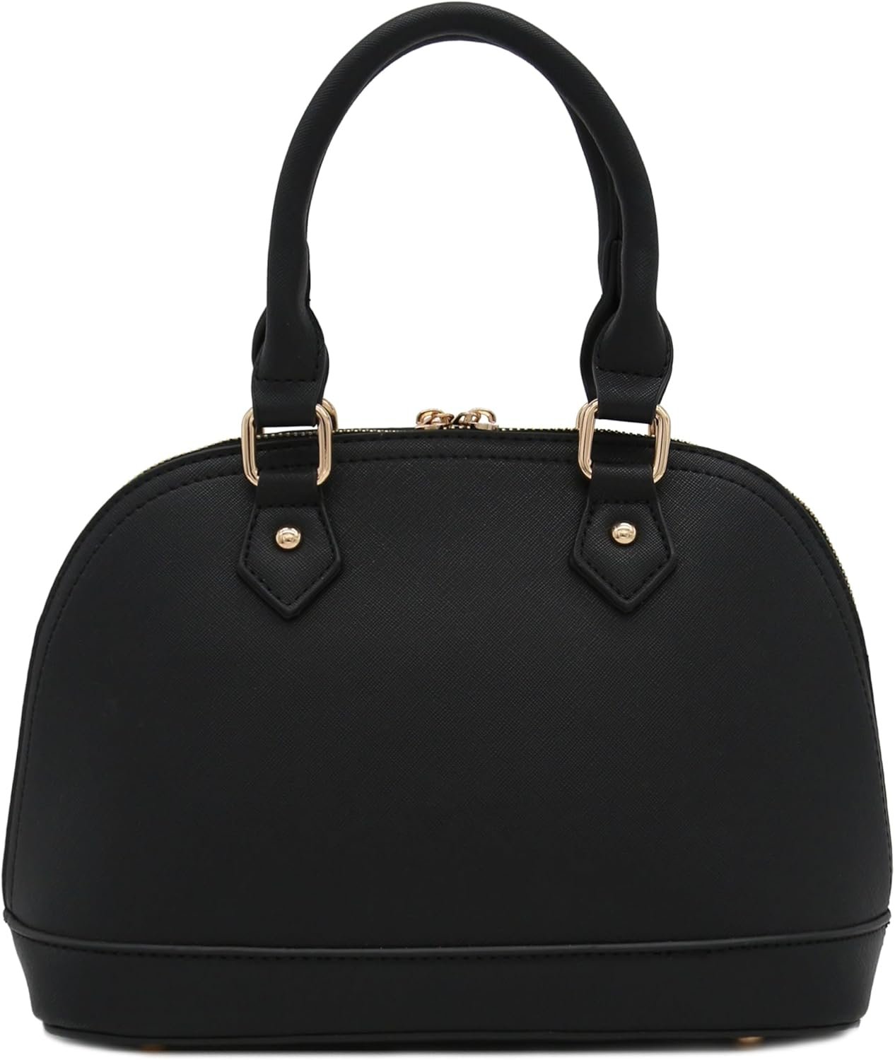 This medium size faux saffiano leather classic satchel bag makes it easy to organize your everyday items.