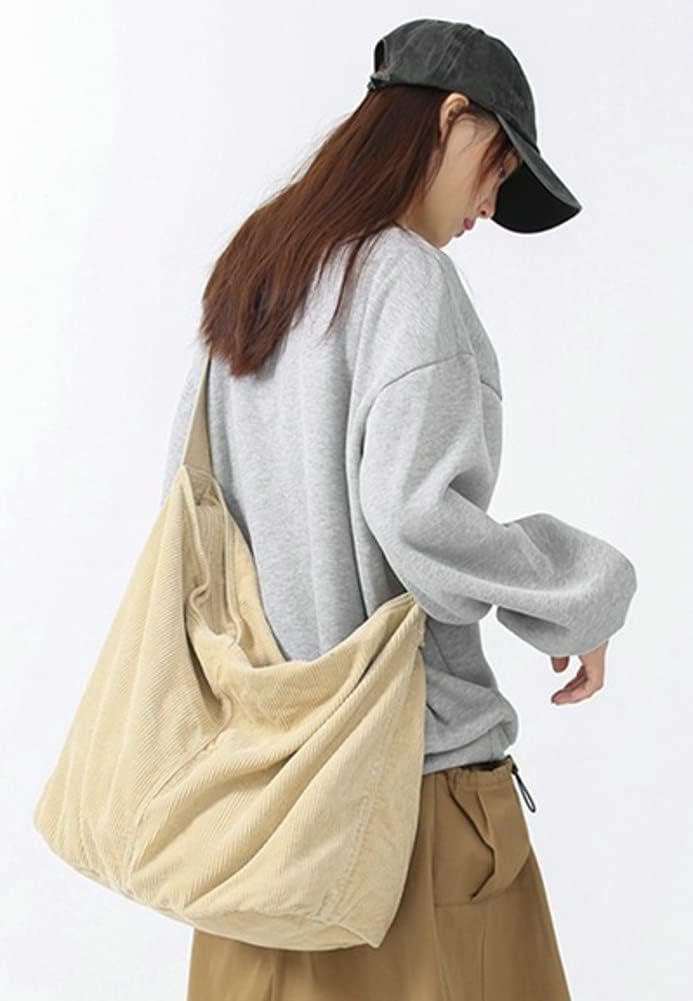 Corduroy Shoulder Bag for Women Men Large Capacity Crossbody Bag Minimalist Tote Commuting Handbag Purse