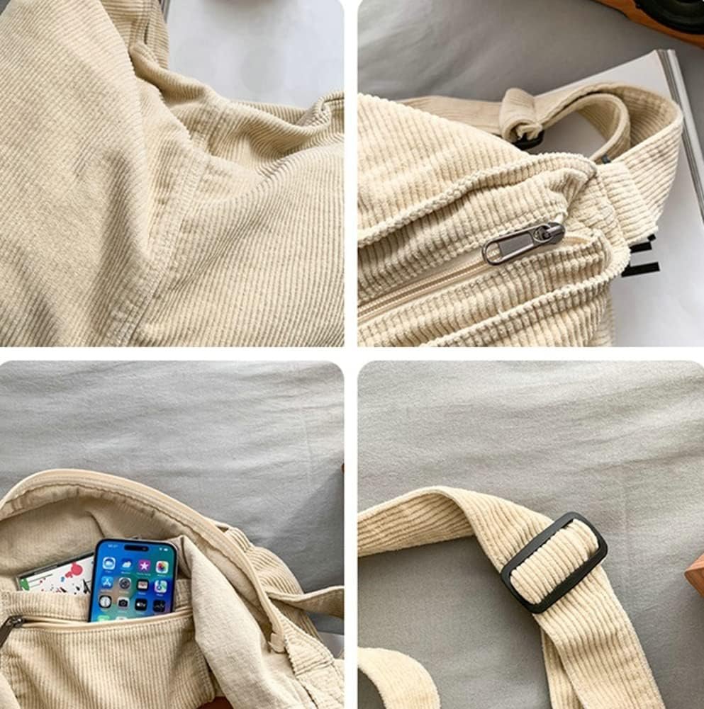 Material: The surface is made of corduroy, which is comfortable, soft, thick, wear-resistant, and has good breathability. Suitable for various clothing styles and seasons, making you look more fashionable.Size: 15″*7.9″*14.6″, Weight: 0.77 pounds. An adjustable shoulder strap that can be used as a shoulder bag, crossbody bag, handbag, perfect for daily use.Large Capacity: The Tote bag is large enough to hold all your daily necessities. You can easily carry your phone, books, magazines, keys, wallet, charger, water bottle, cosmetics, sunglasses, and more.Structure: 1 main compartment with zipper to prevent items from falling out of the large pocket, 1 inner patch pocket and 4 small zipper pocket, perfect for storing small items such as ID cards and keys. Easy to organize and search, practical and convenient.