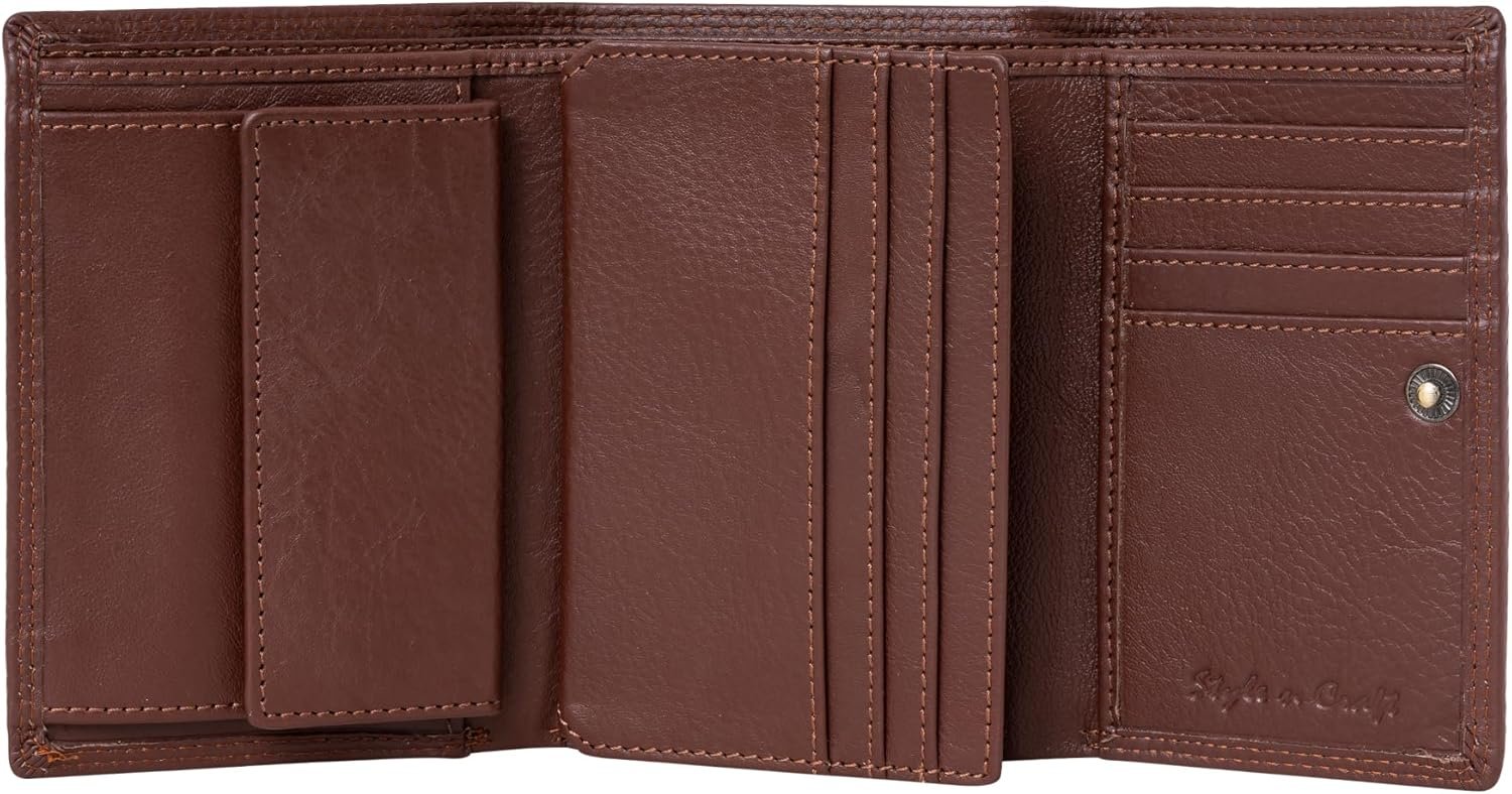 Style N Craft Women’s Full Grain Leather RFID Protected Trifold Wallet, Brown