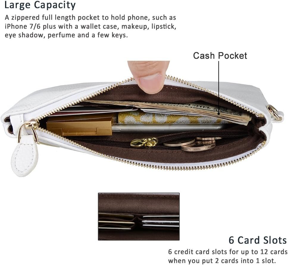 Customers find the handbag has a nice size for holding their phone, cards, and money. They appreciate the pretty color and rich design. The quality of the material is described as good and durable. The leather feels soft and smooth, with a nice feel. The handbag provides enough room for essentials like phones, keys, and Kleenex.