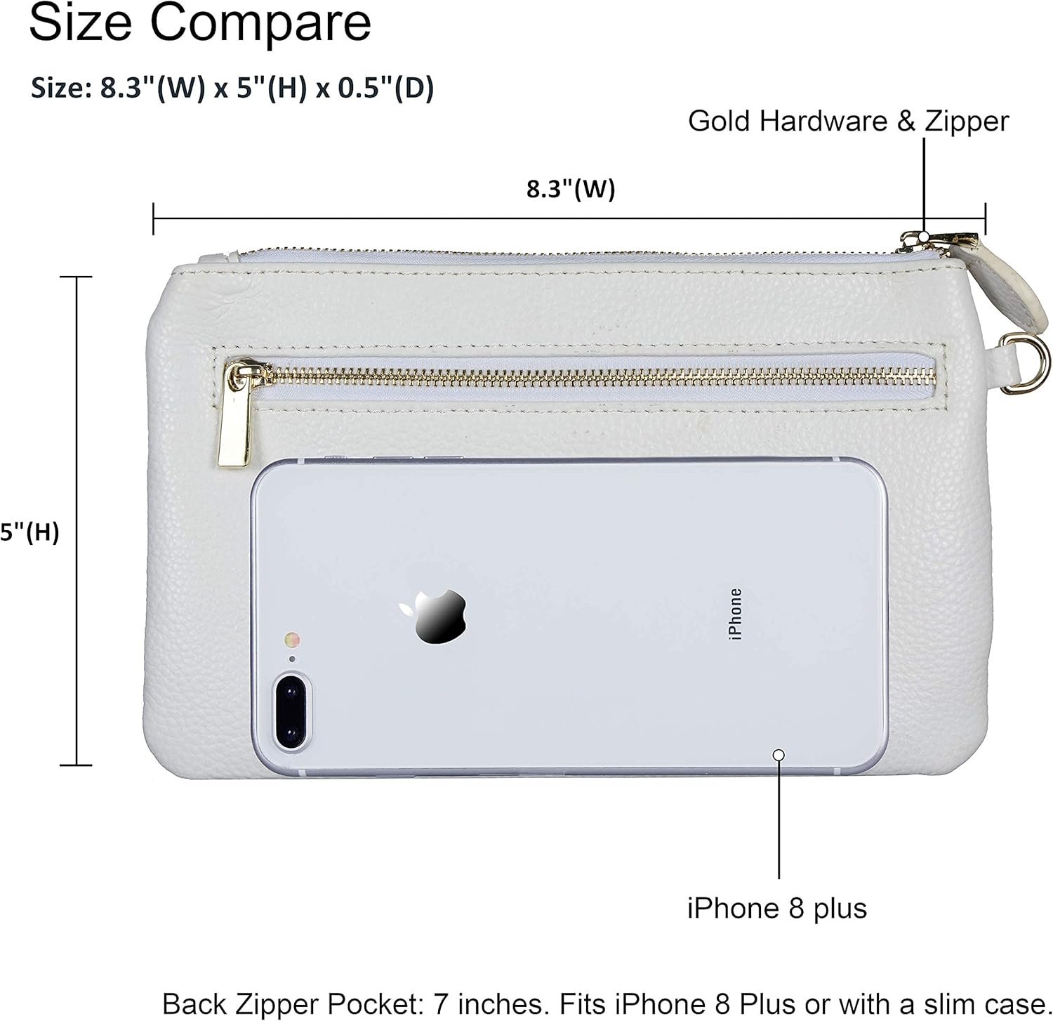 befen Women’s Genuine Italian Leather Wristlet Clutch Wallet Purse, Gold Zipper