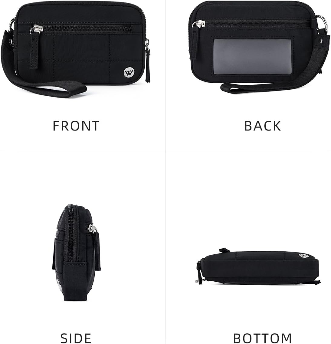 WESTBRONCO Wristlet Wallets for Women Nylon Quilted RFID Wallet with 3 Zipper Purse for Travel Credit Card Holder Phone Organizer