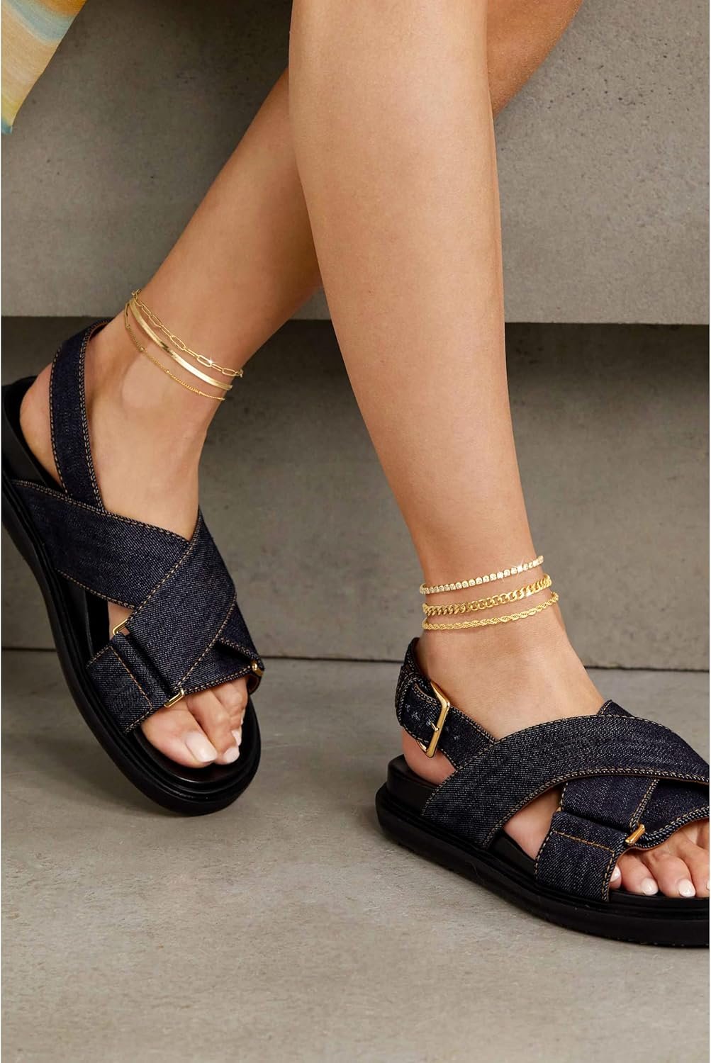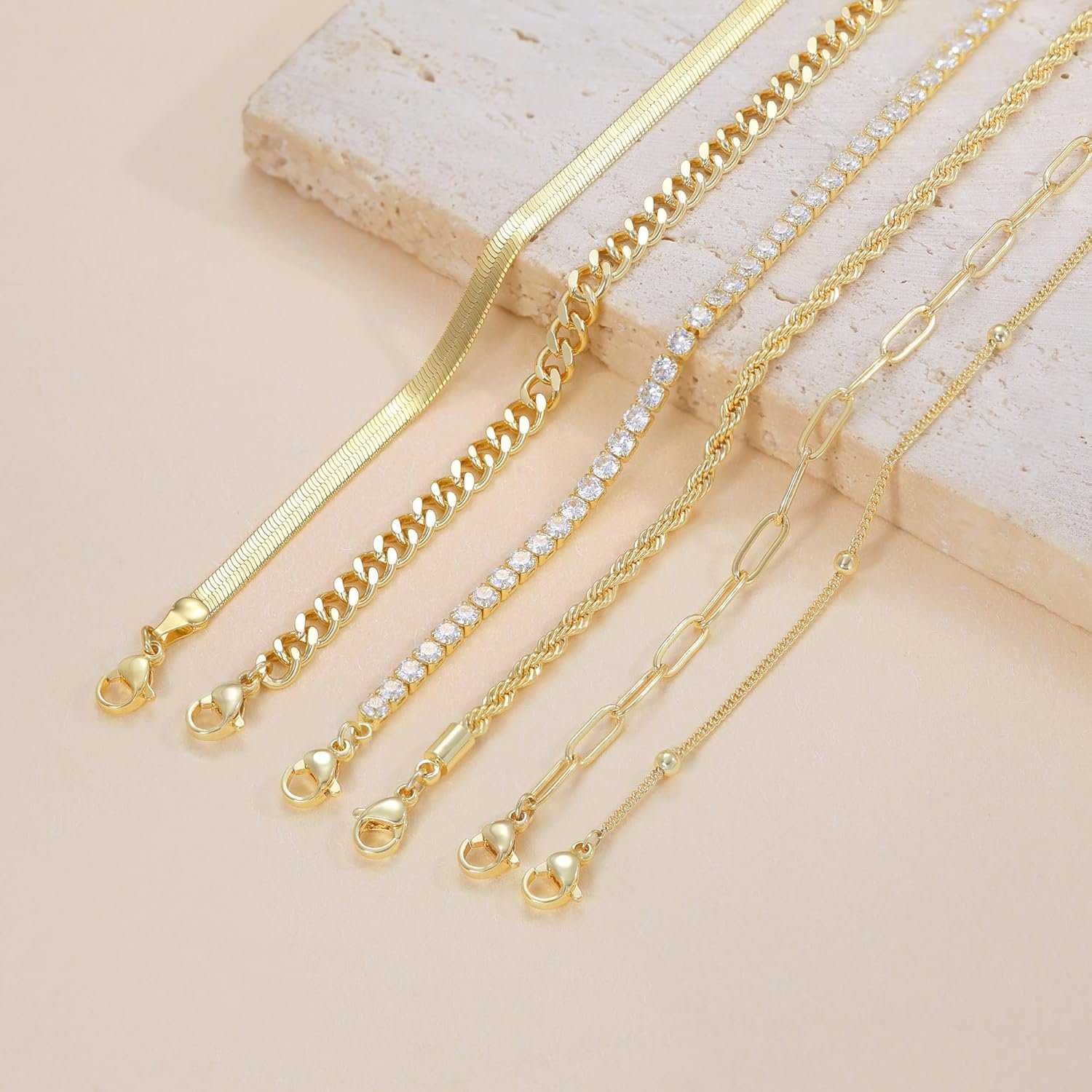 DEARMAY Gold Ankle Bracelets for Women Waterproof – Dainty 6Pcs 14K Gold Plated Anklets Layered Cuban Link Chain Herringbone Cute Anklets Set Pack Summer Beach Jewelry Gift for Women Teen