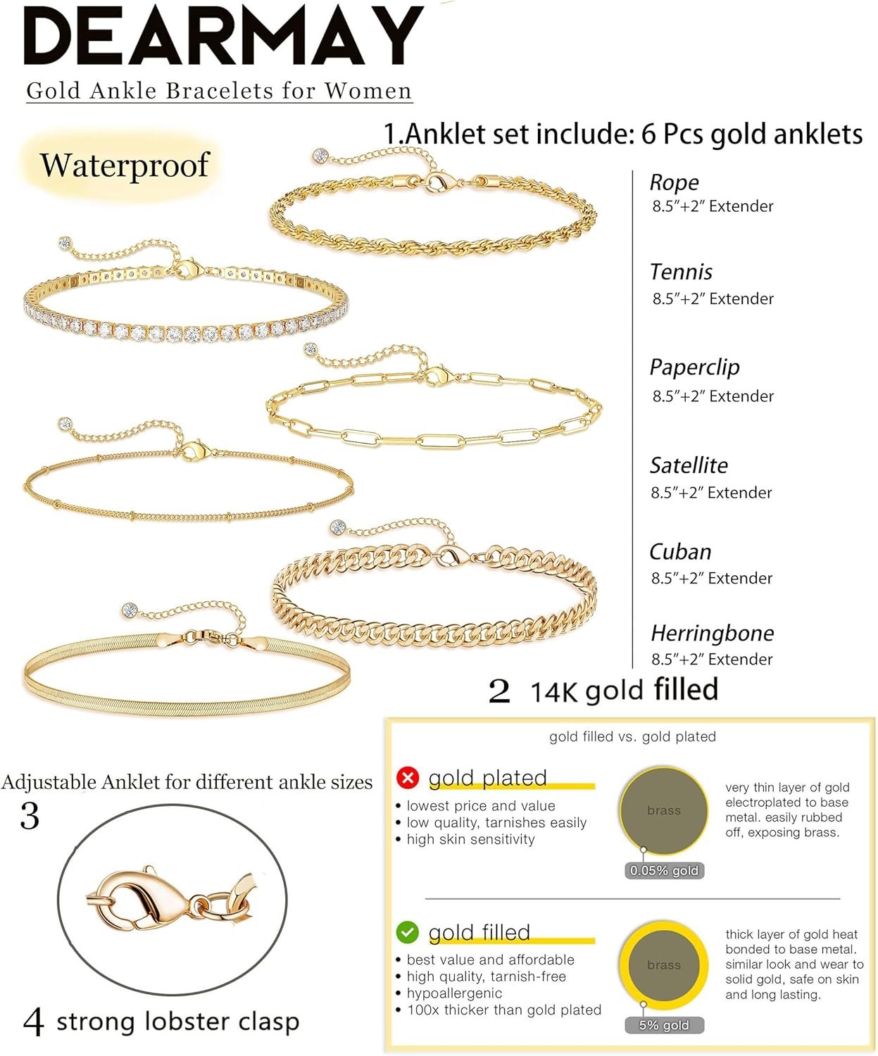 Be the first to review “DEARMAY Gold Ankle Bracelets for Women Waterproof – Dainty 6Pcs 14K Gold Plated Anklets Layered Cuban Link Chain Herringbone Cute Anklets Set Pack Summer Beach Jewelry Gift for Women Teen”