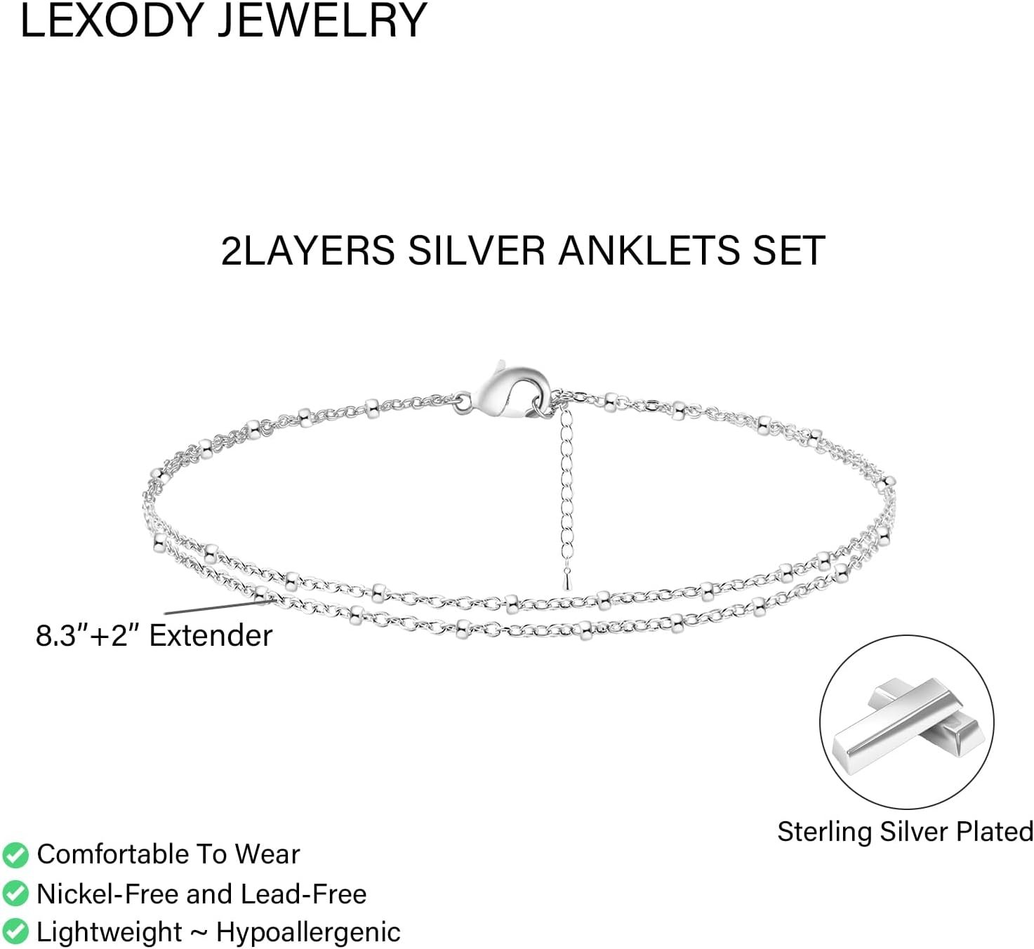 LEXODY Silver/Gold Anklets for Women, Sterling Silver Evil Eye Ankle Bracelets for Women Trendy Dainty Waterproof Anklets Set Adjustable Layered Anklet Bracelets for Women Silver Jewelry Gift