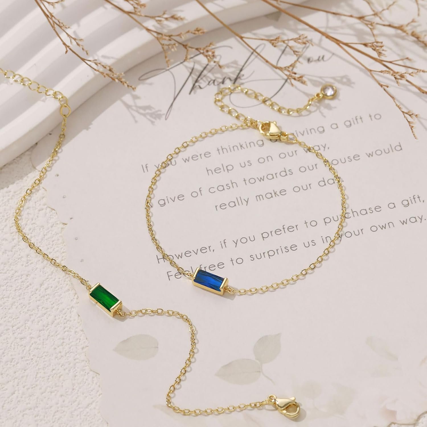FUNEIA Birthstone Gold Bracelets for Women Non Tarnish Trendy Dainty 14K Gold Plated Bracelet Stack Stackable Blue Green May Emerald Friendship Bracelets Jewelry Gifts for Mom Best Friend