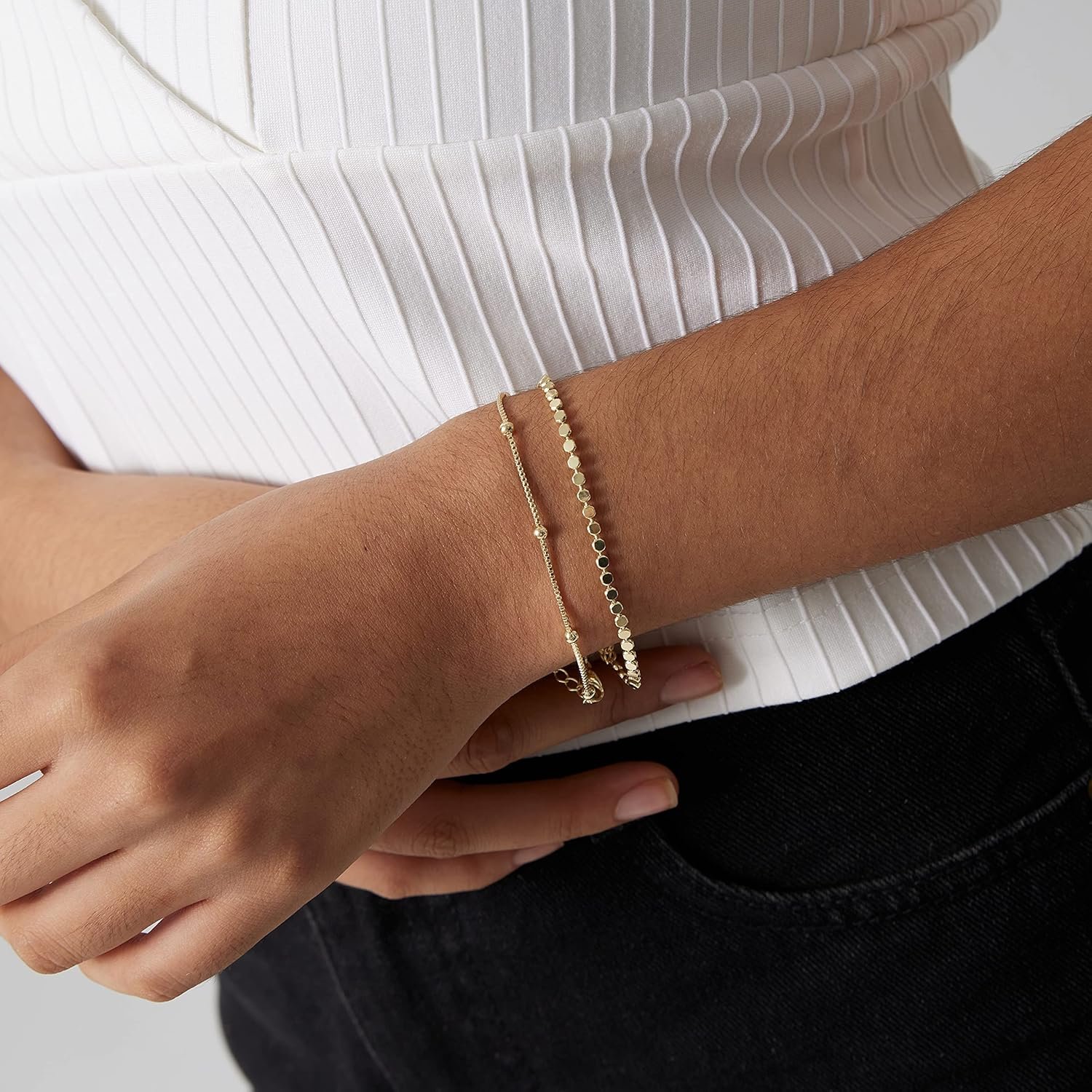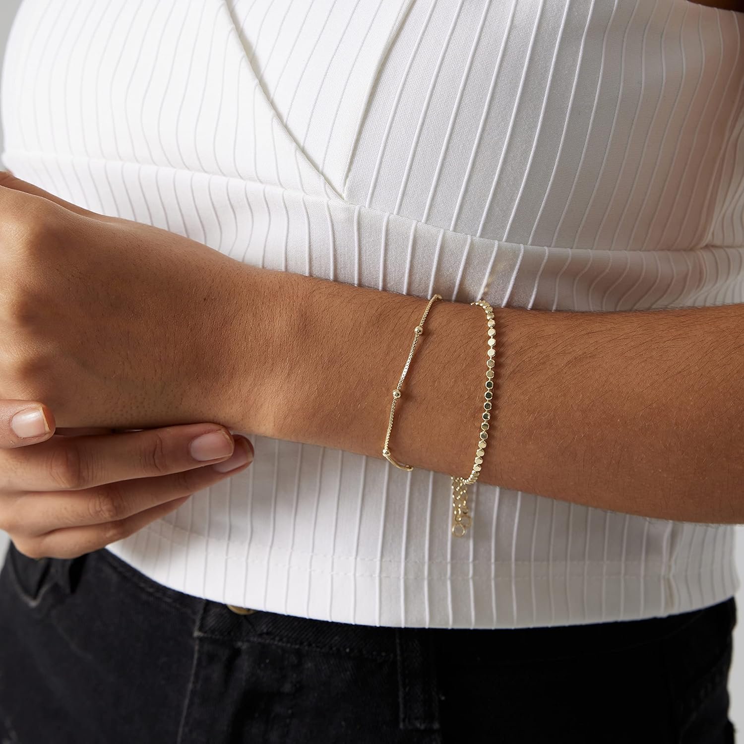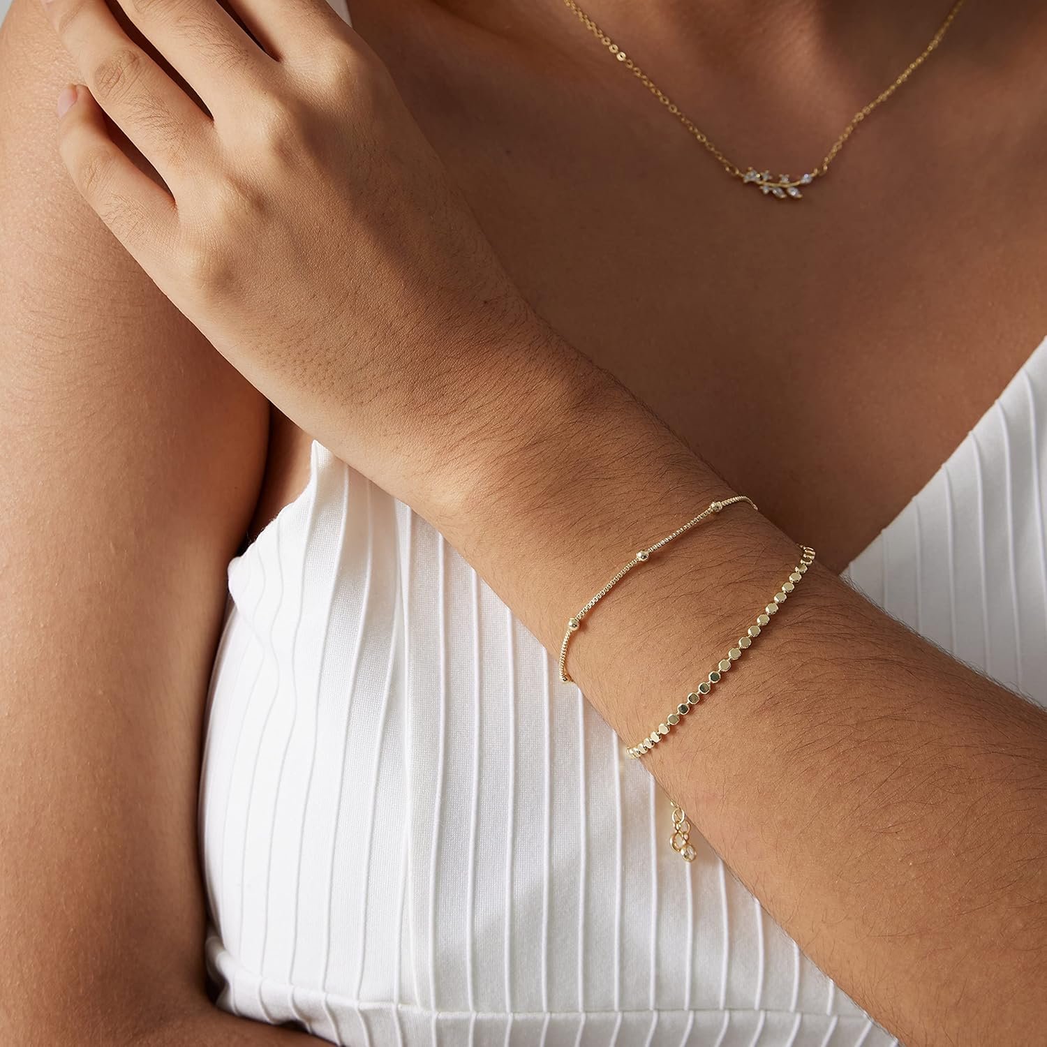 MIDEEO Bracelets for Women Dainty Layered Herringbone Twisted Rope Chain Bracelets Set Layering Dot CZ Leave Beaded Bracelets Dainty Cubic Zirconia Tennis Chain Bracelet Jewelry Gifts