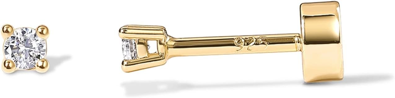 PAVOI 14K Gold Plated Solid 925 Sterling Silver Post Cubic Zirconia Stud Flat Back Earrings for Women | Cartilage Earring | Helix Piercing Jewelry | Small Stud Earrings for Women