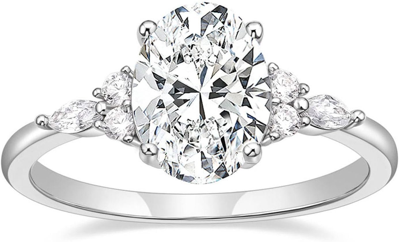 TIGRADE 3CT Engagement Ring Oval Cut Cubic Zirconia Marquise Round CZ Eternity Wedding Band for Women Size 3-12