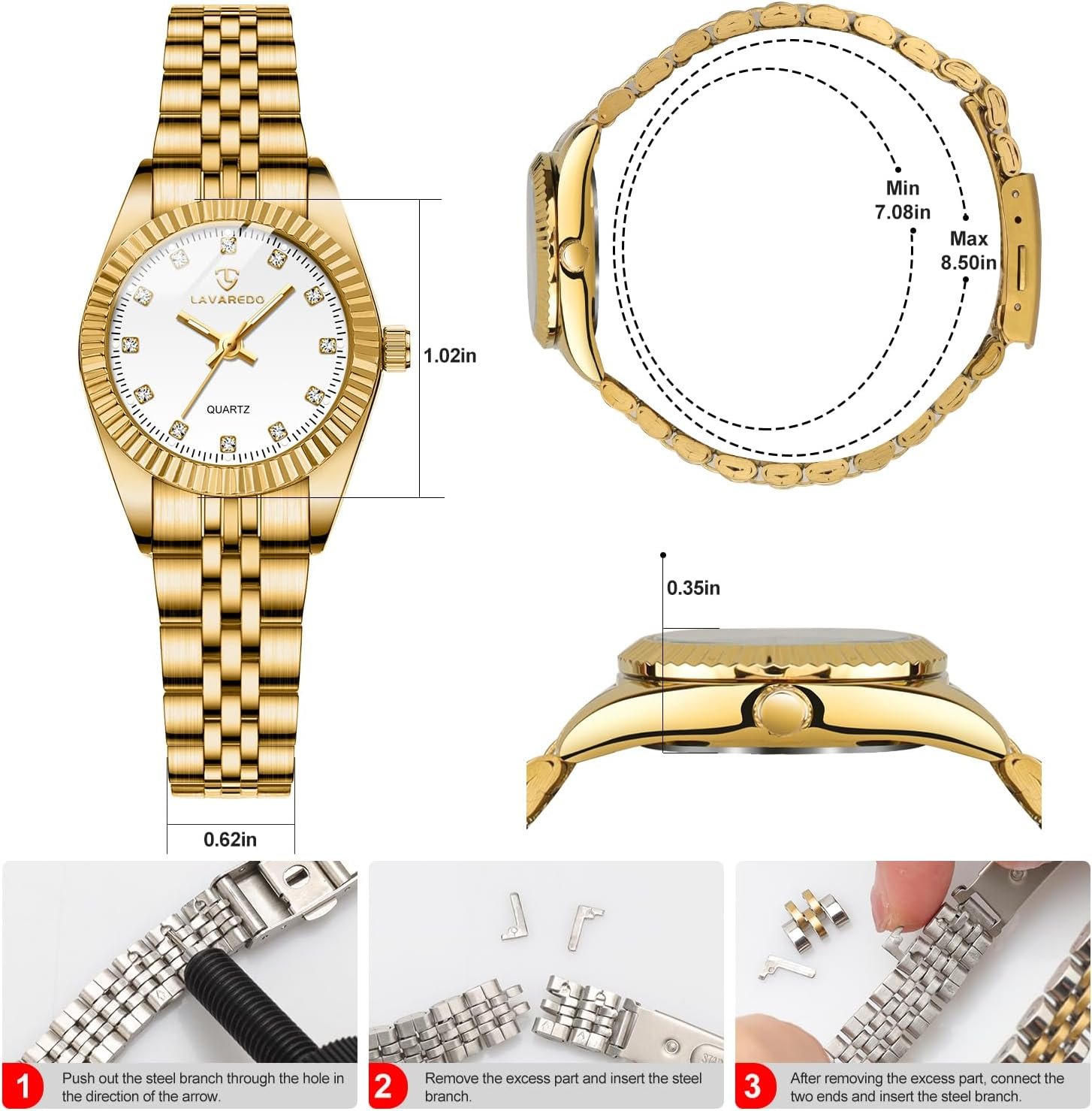 All stainless steel womens watch with advanced quartz movement, accurate timekeeping, luminous hands for easy reading at night, with high hardness mineral glass, not easy to scratch or damage, stand the test of time.