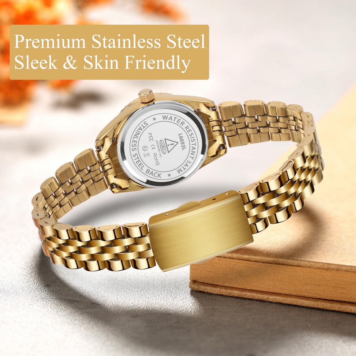 Watches for Women, Small Gold Womens Stainless Steel Ladies Wrist Watches, Waterproof Analog Watch with Luminous and Japanese Quartz Movement, Dainty Dress Watch, Gifts for Women