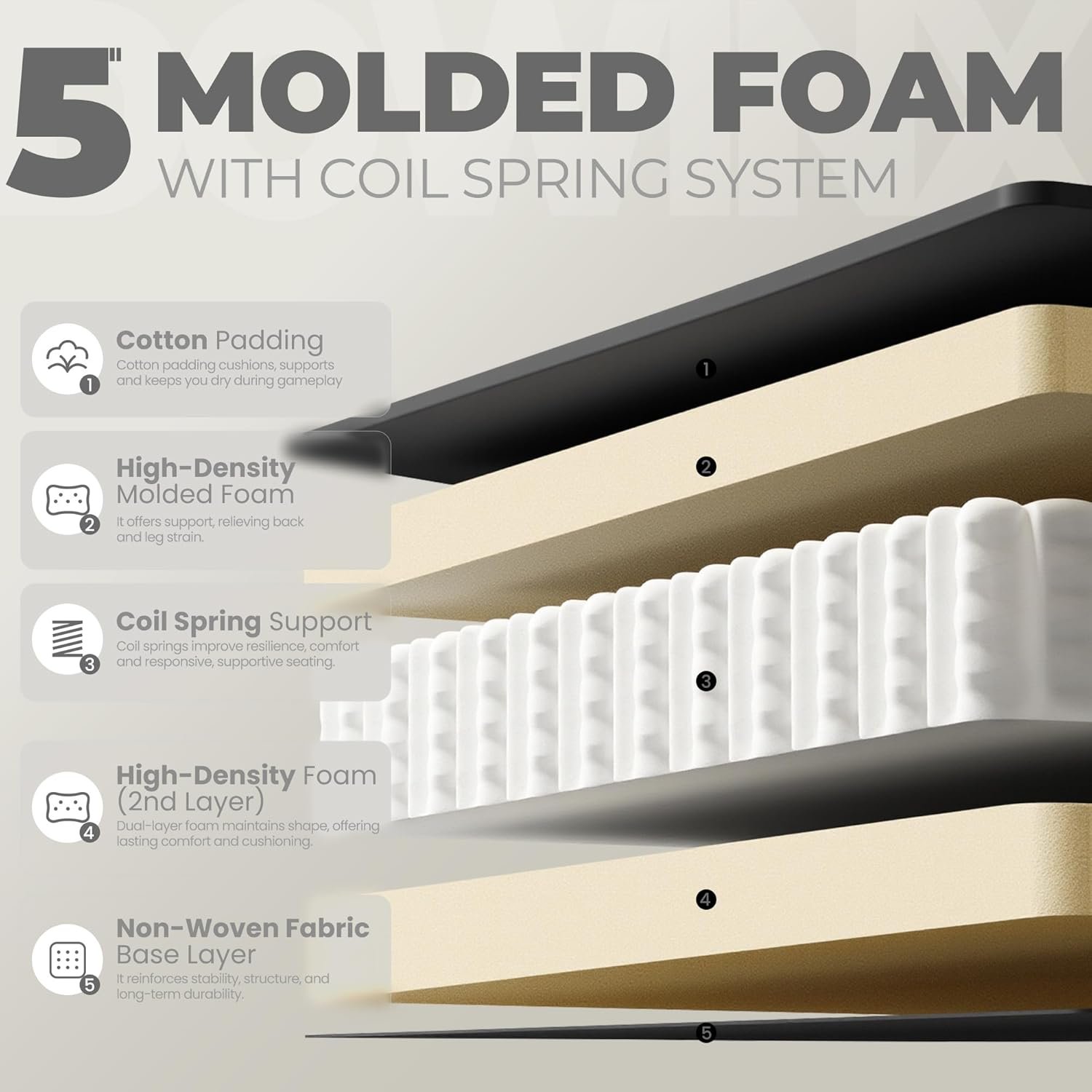 Sitting Comfort Like Sofa: This seat cushion of gaming chair is composed of pocket springs and shaped foam, allowing for the same elasticity and comfort as a sofa. The springs better distribute the pressure on the seat cushion for better ride comfort and more ergonomic.