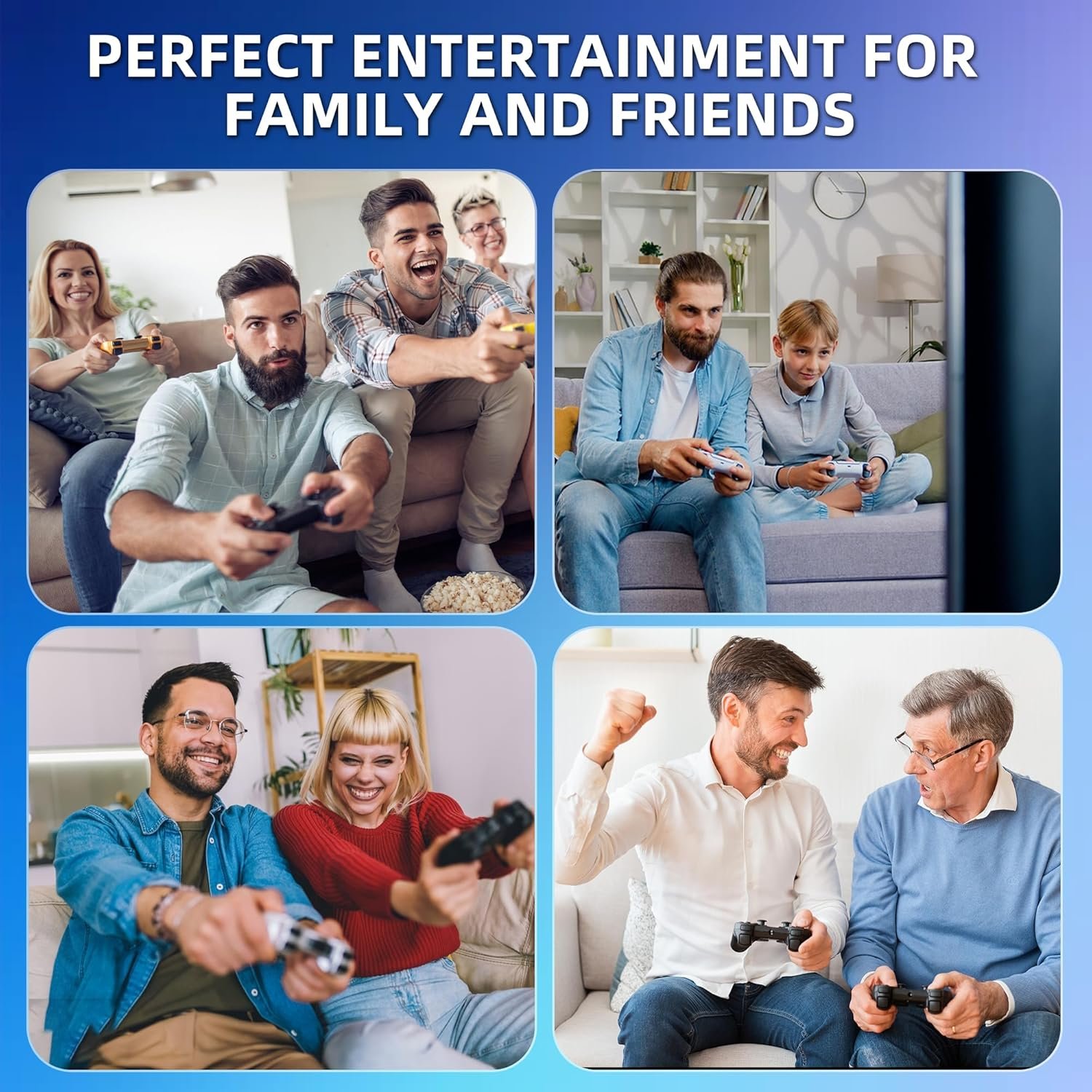 【Dual 2.4GHz Wireless Controllers】Enjoy stable and nearly latency-free gaming with 2 upgraded 2.4GHz wireless controllers. The Video Game Console supports simultaneous play for two people, eliminating wire interference during gameplay. The maximum connection distance is 40 feet.
