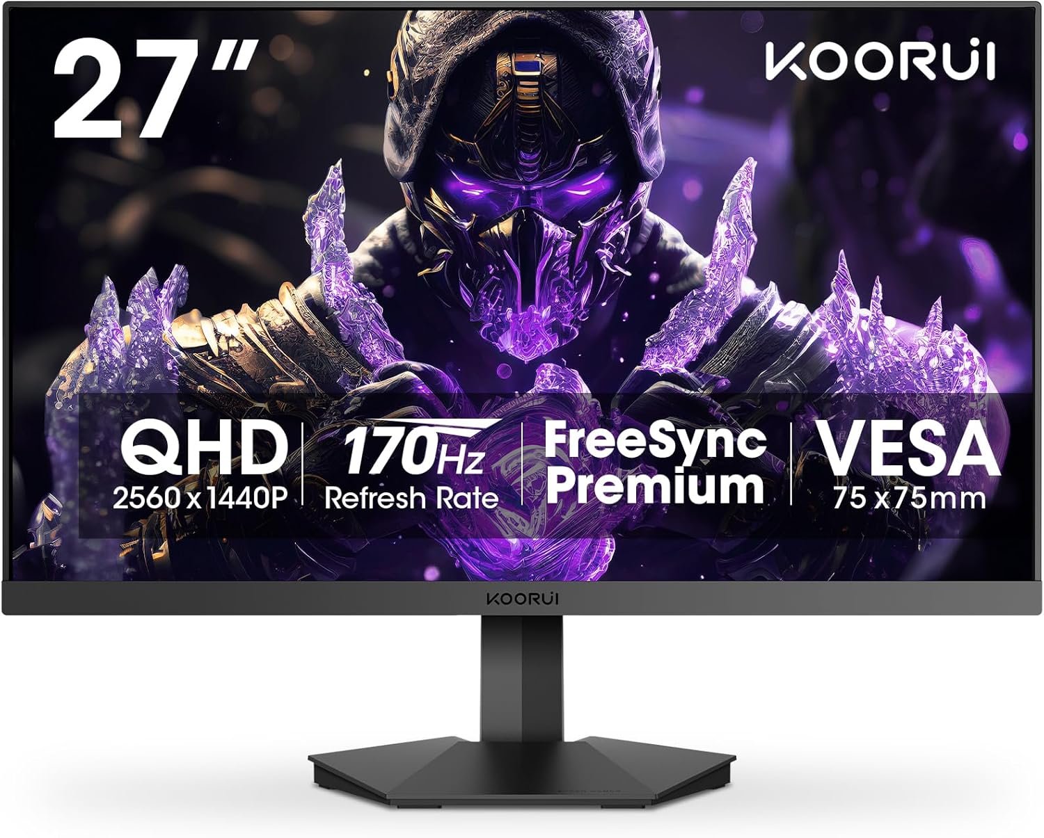 KOORUI 27″ 1440P QHD HDR Gaming Monitor (GN03) – 2K (2560 x 1440), 170Hz (Supports 144Hz), 1ms (MPRT) Response Time, FreeSync Premium, G-SYNC Compatible, DisplayPort, HDMI