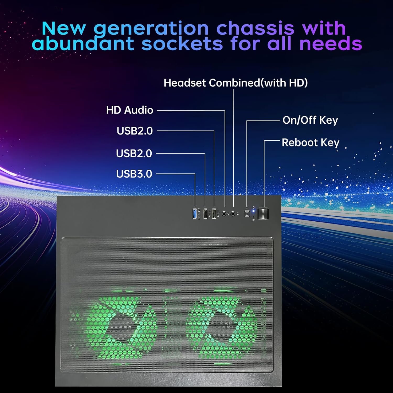 PC Computer Desktop AMD Ryzen 7 5700G Up to 4.6GHz Prebuilt PC 16G RAM DDR4 1TB M.2 SSD ARGB Fan Gaming Computer Tower