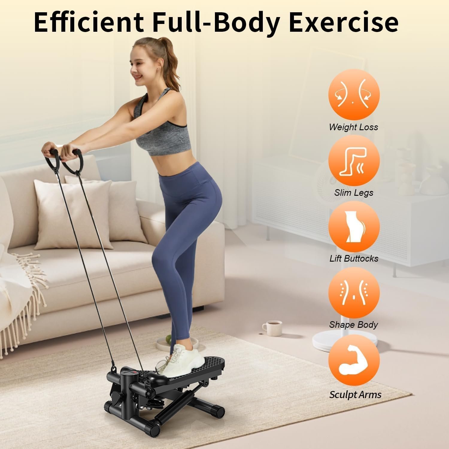Mini Stepper for Home Workout with Resistance Bands & LCD Display – 300LB Capacity, Quiet Stair Climber Machine for Small Spaces, Cardio & Fat Burning