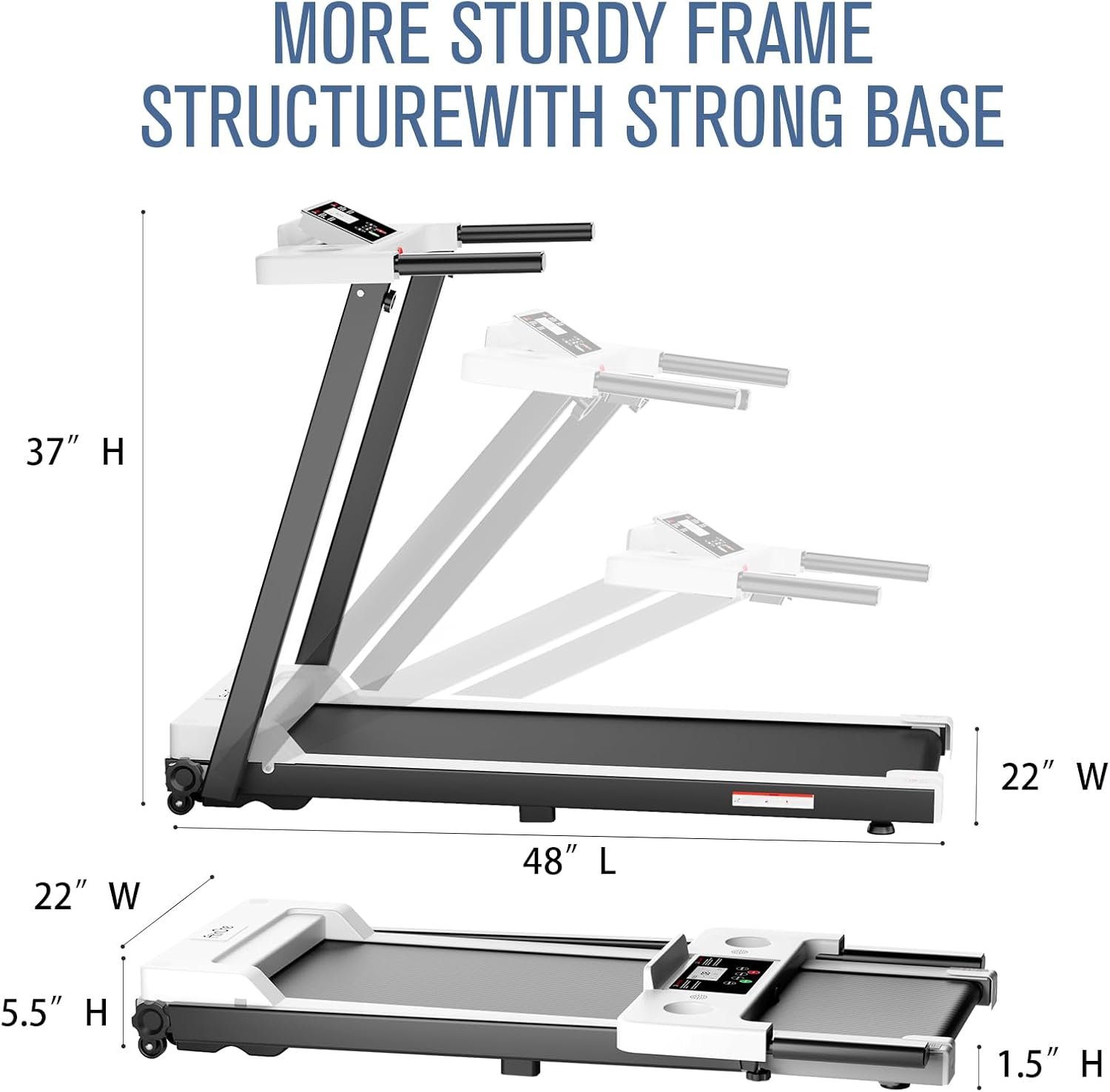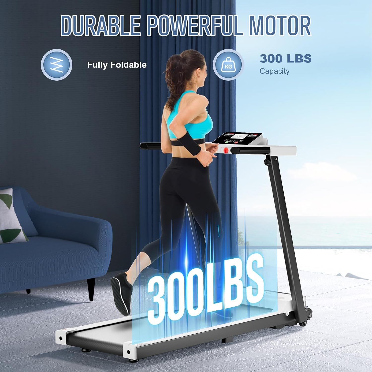 Portable Foldable 3.0 HP Small Treadmills for Home Office with 300 LBS Capacity, Folding Running Walking Compact Treadmill with Handle Bar and LED Display