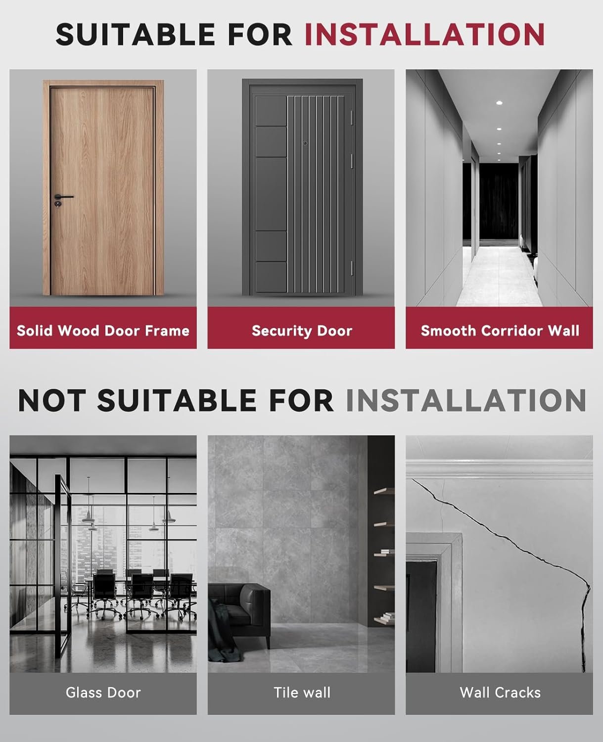 Before purchasing, ensure your door frame width is between 28.3-37.4 inches (72 to 95 cm). This Pull Up Bar is not suitable for frames outside this range.This Pull Up Bar for Doorway is not suitable for tiles, glass or non-solid door frames