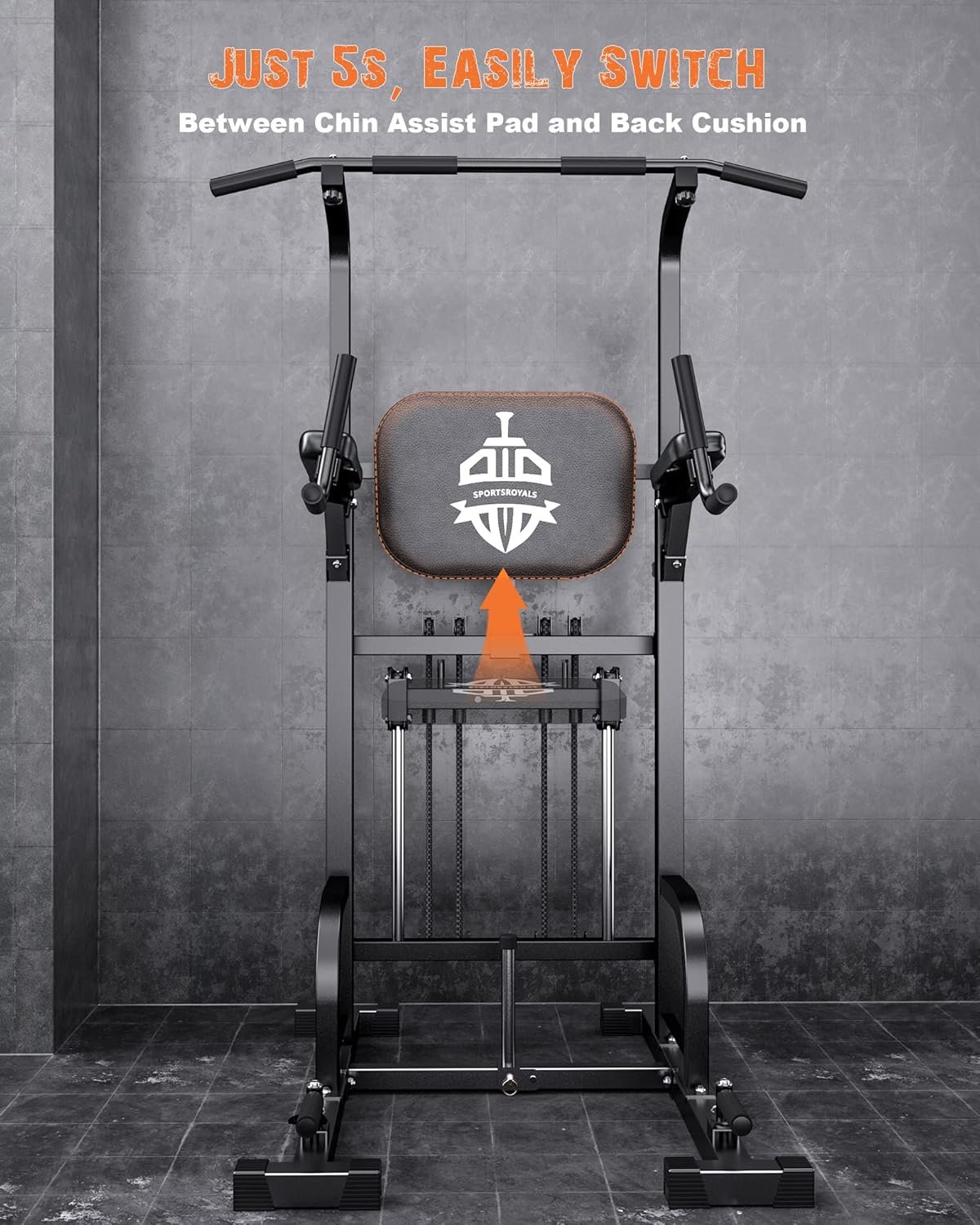 【2 IN 1 Assisted Pad】Sportsroyals power tower has a high-density soft sponge assisted pad, which provides you with resistance support to fight against your body weight, making it easier for you to complete pull-ups. Folding it is the backrest, helping scientific fitness and correcting your exercise posture.