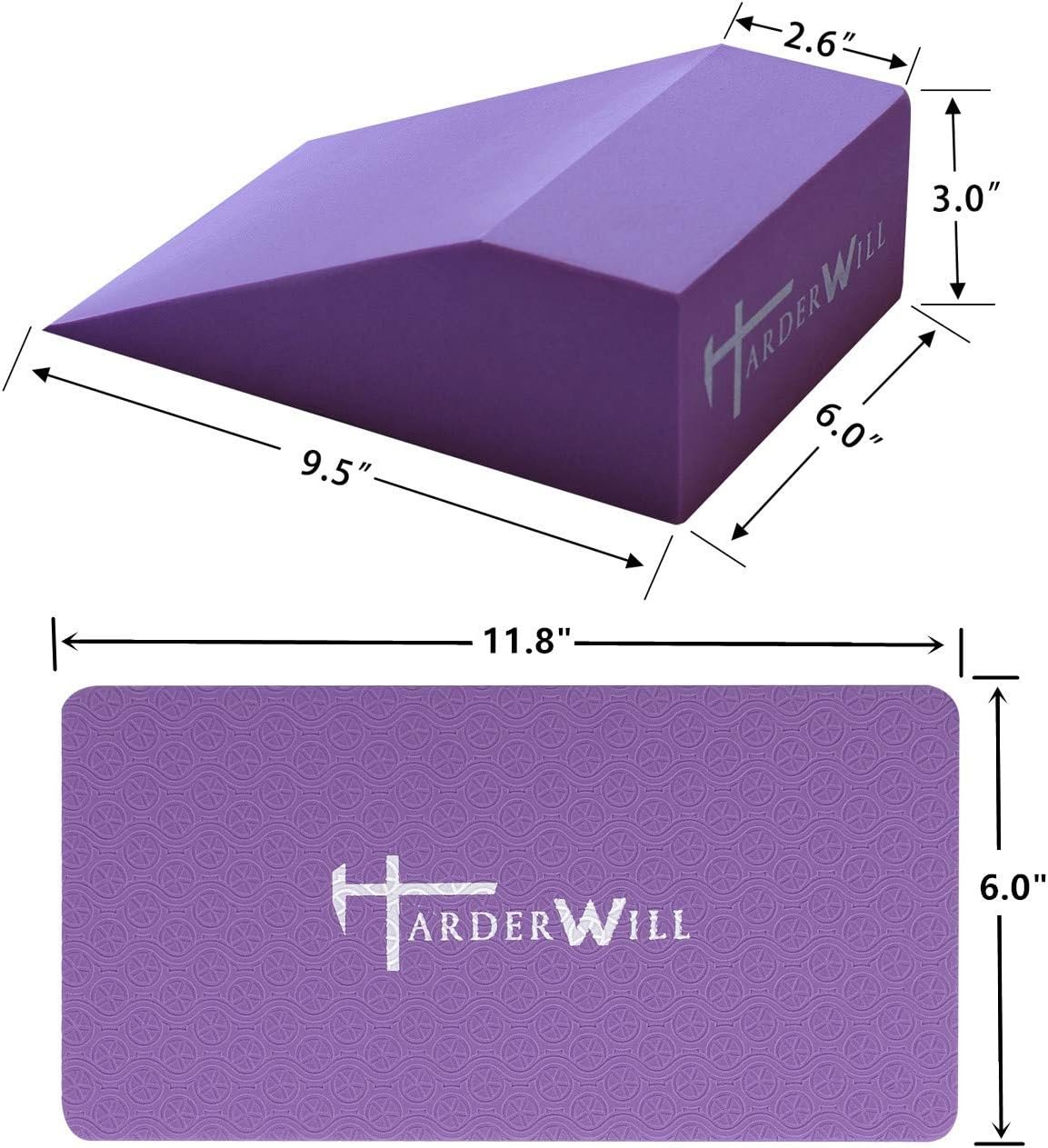 HarderWill Yoga Foam Wedge Blocks (Pair), Calf Raise Block, Calf Stretcher, Yoga Wrist Support, Balance, Pushup, Fitness, Pilates, Heel Stretcher, Squat Wedge with Gym Bag