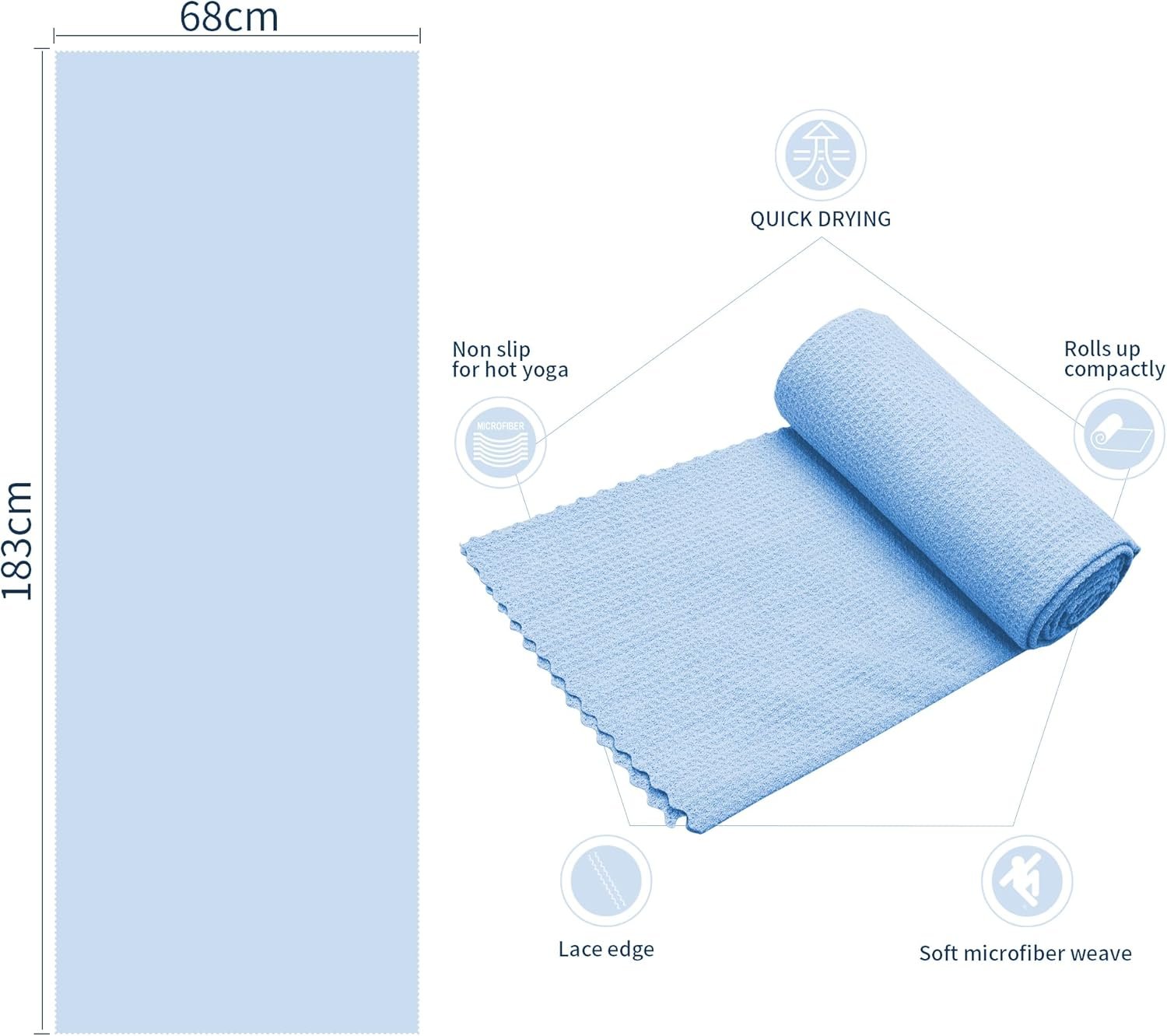 This 2-pack of hot yoga towels. Designed to be highly absorbent, these towels prevent slipping and sliding during intense hot yoga sessions. Crafted from premium materials, they quickly wick away sweat, keeping you focused and comfortable throughout your workout. The non-slip surface provides excellent traction, allowing you to hold poses with confidence and stability. Lightweight and compact, these towels are easy to carry to and from the studio. Lint Free Long Bath towels,waffle Bath Towels for Bathroom Measuring approximately 26.5 x 72 inches (68 x 183 cm), they offer ample coverage for most yoga mats. Machine washable for easy care, these hot yoga towels are an essential accessory for any yogi seeking a secure and sweat-free practice. Upgrade your yoga experience with this 2-pack of high-performance, absorbent, and non-slip towels.