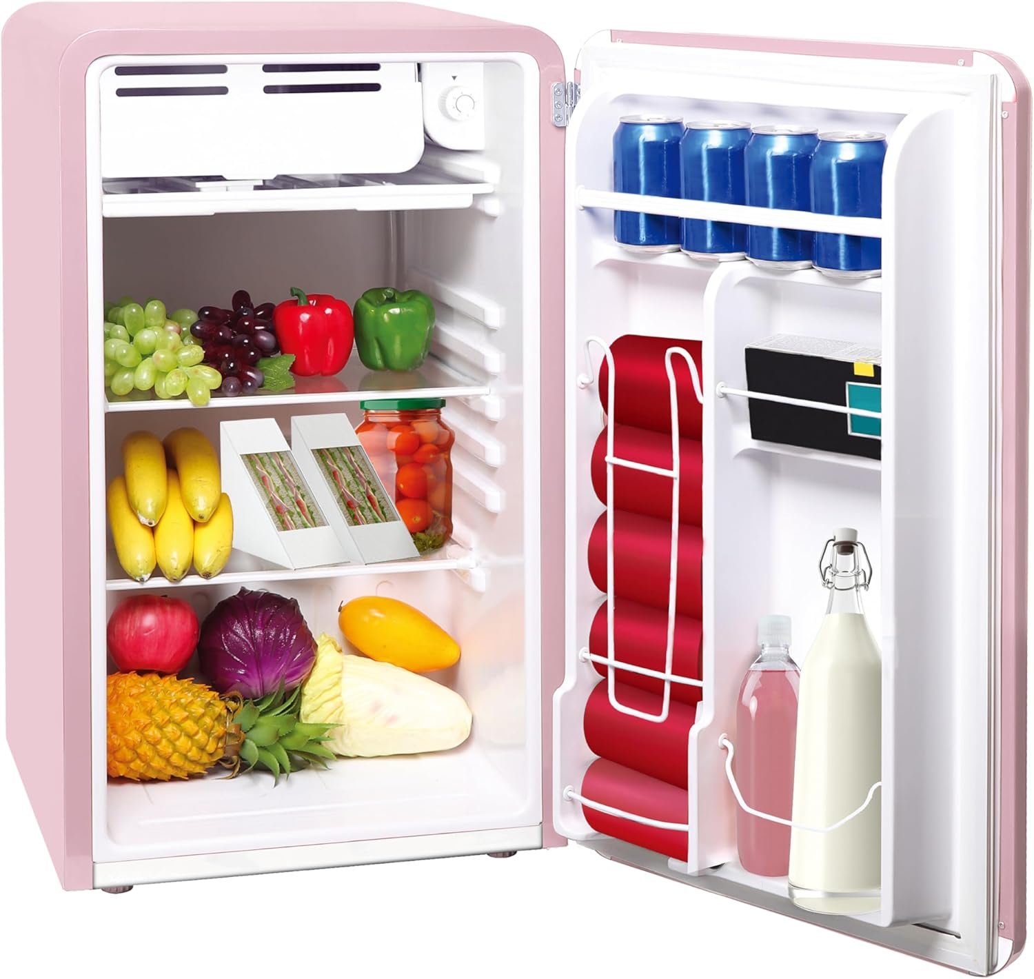 Frigidaire Retro Compact Refrigerator with Chiller, 3.2 cu ft Countertop Fridge, Built-In Bottle Opener, Rounded Corners, Premium, for Office, Bedroom, Dorm Room, Cabin, 18.5D x 20W x 31.5H (Pink)