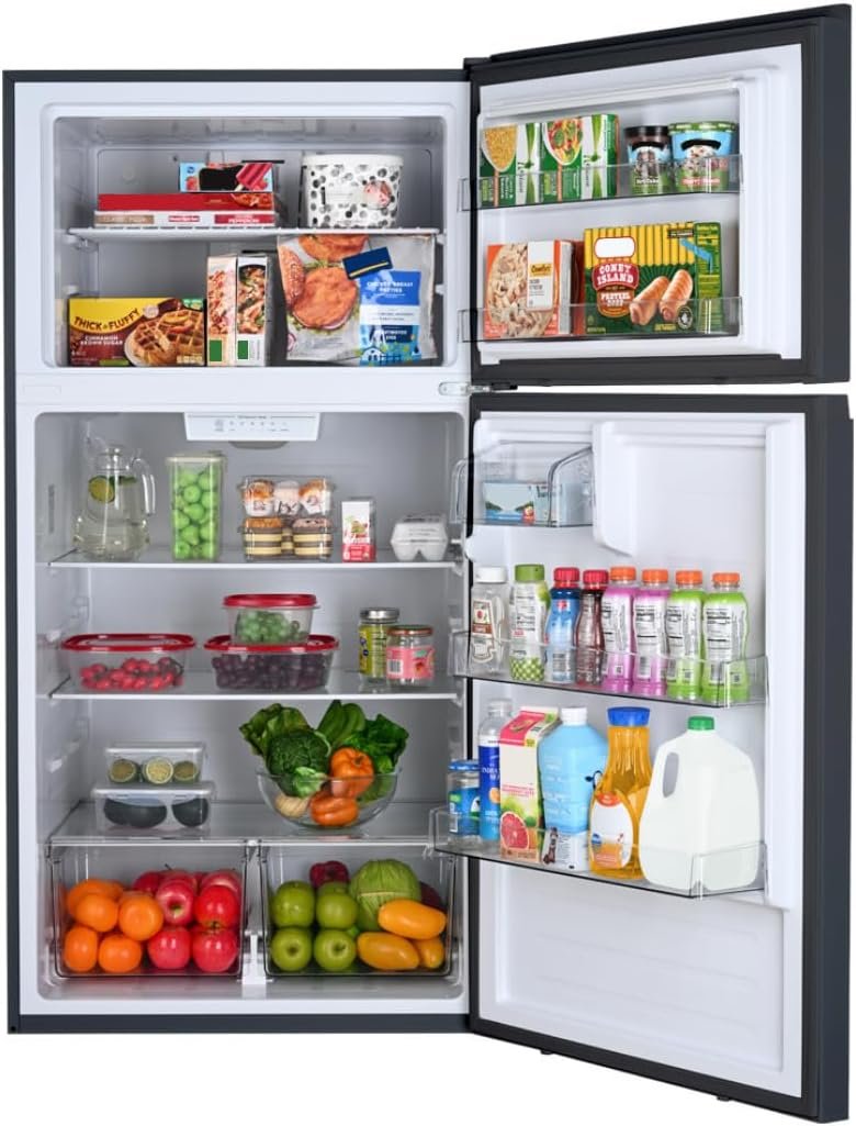 33 IN. FULL-SIZE REFRIGERATOR/FREEZER: Features 20.5 cu. ft. of storage space and a 33-in. wide footprint to save space in your kitchen while still including the traditional standard-depth design