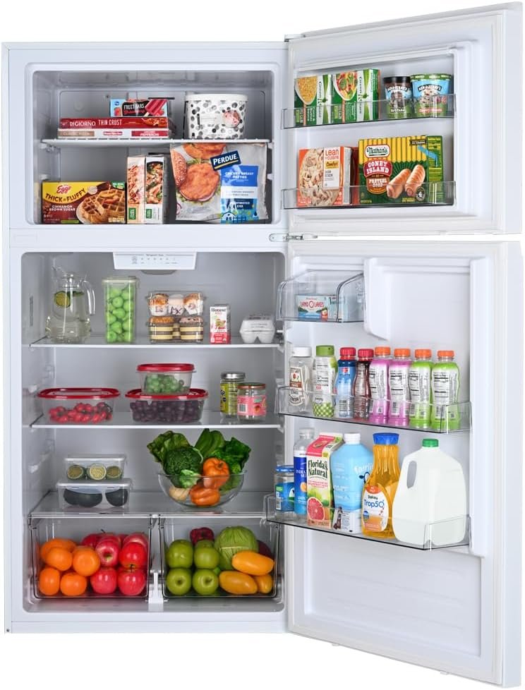 33 IN. FULL-SIZE REFRIGERATOR/FREEZER: Features 20.5 cu. ft. of storage space and a 33-in. wide footprint to save space in your kitchen while still including the traditional standard-depth design