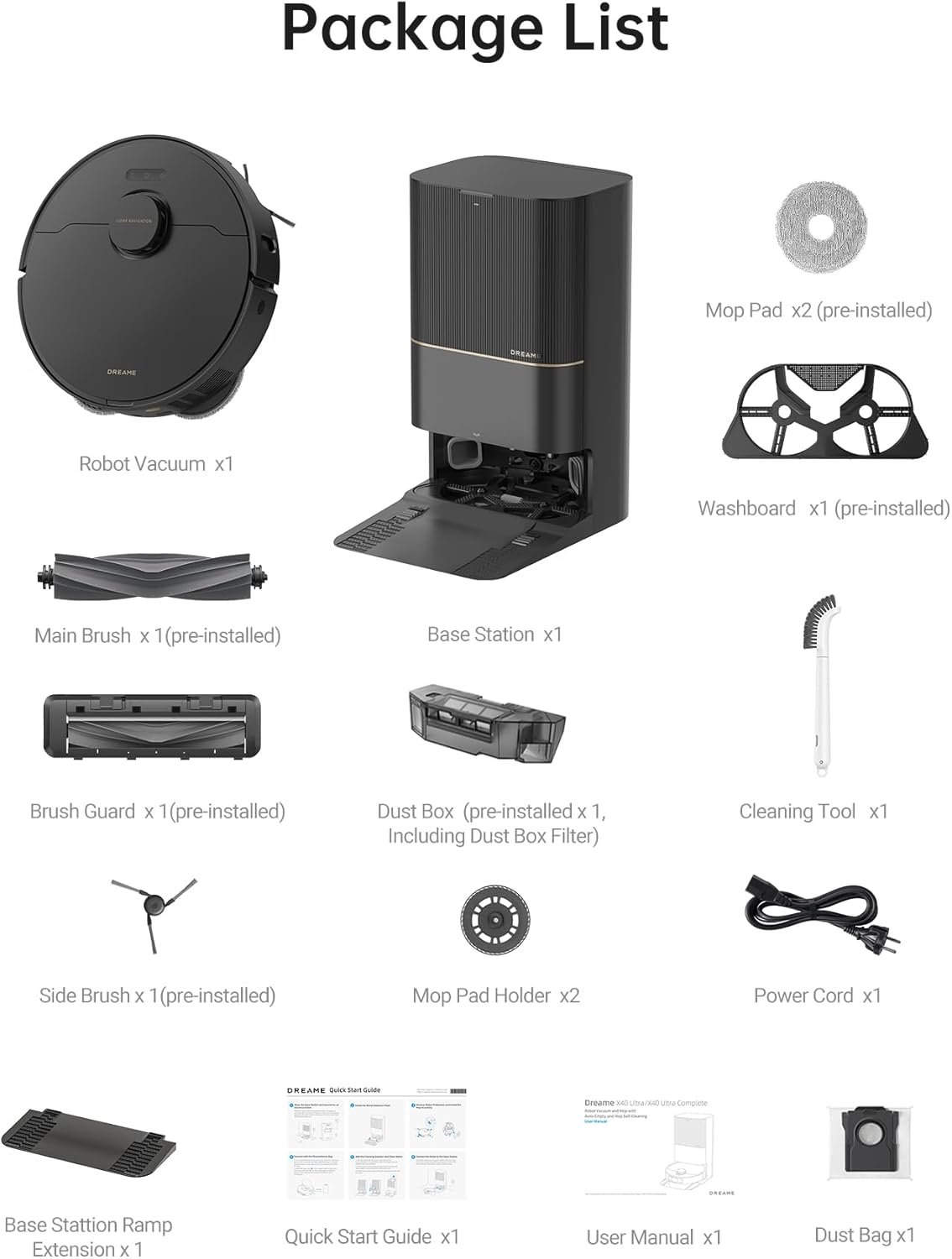 DREAME X40 Ultra Robotic Vacuum with Removable & Liftable Mop, 12,000Pa Suction, Side Brush Extensive Cleaning, 158°F Mop & Washboard Self Cleaning, Auto-Empty, Auto Refill, liftable Brushes