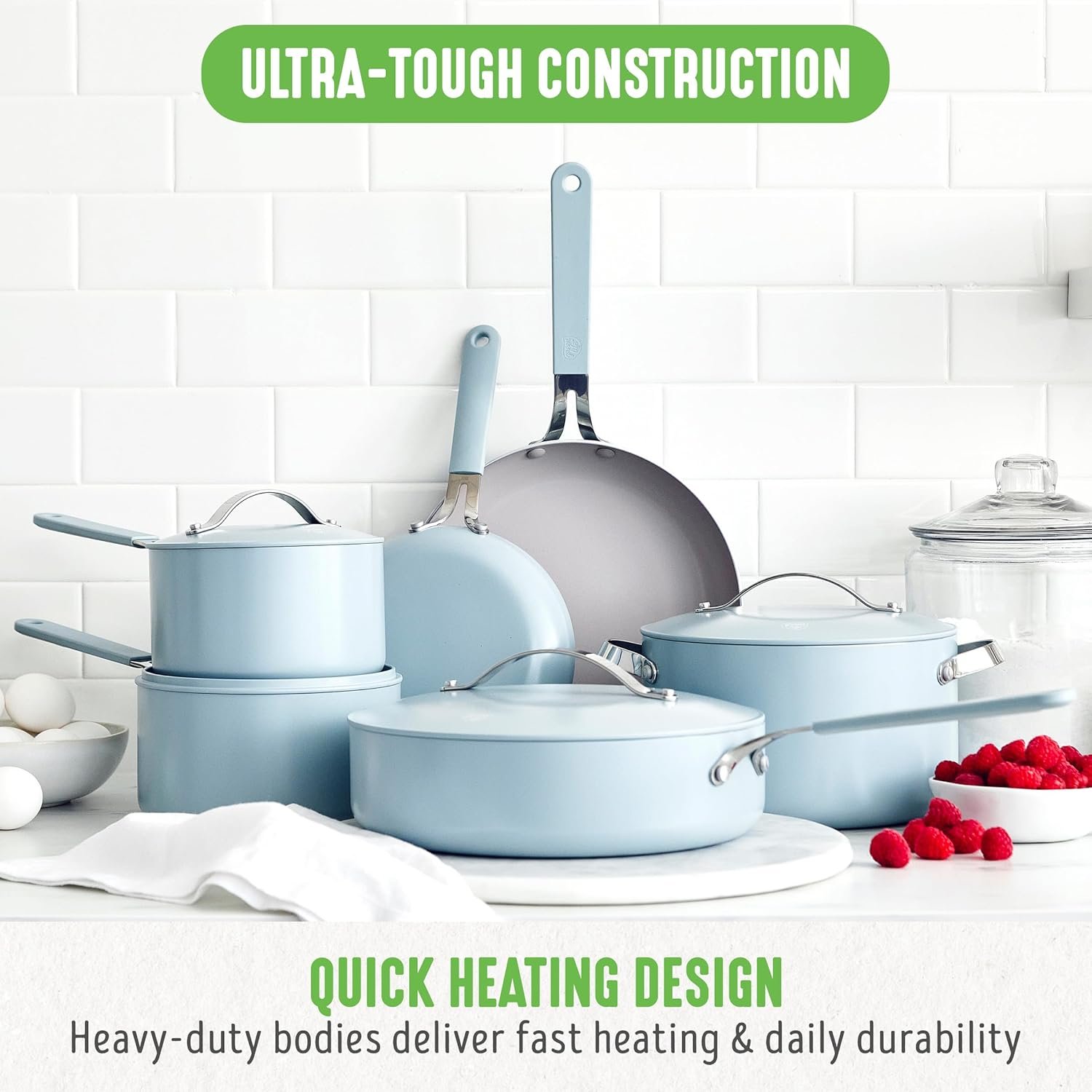 TOXIN-FREE: Our healthy ceramic nonstick coating is derived from sand and free of PFAS, PFOA, lead, and cadmium for worry-free cooking.