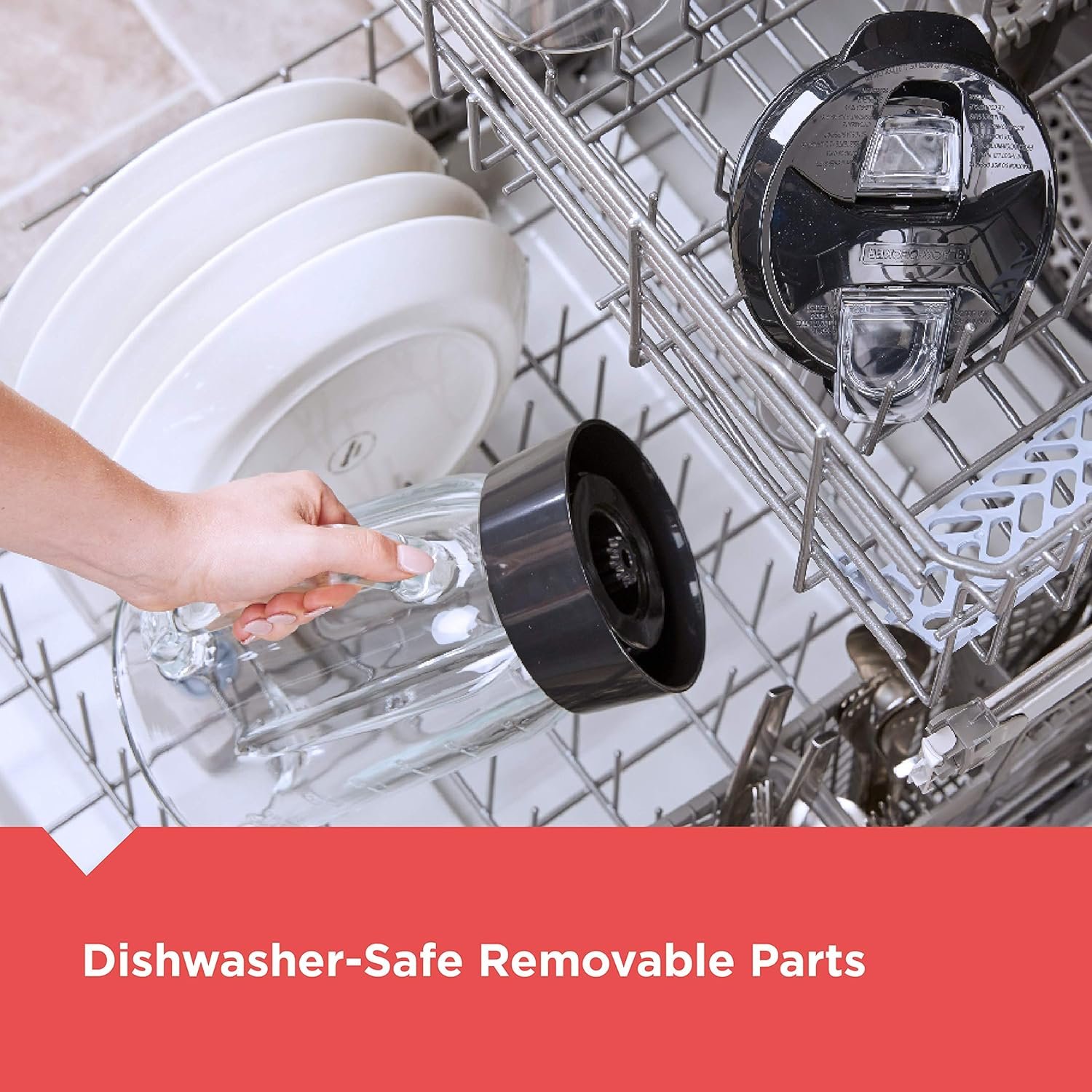 DISHWASHER SAFE REMOVABLE PARTS: Cleanup is a breeze with the dishwasher-safe jar, blade, and lid. Simply remove from base, dissemble, and run through the dishwasher as recommended.
