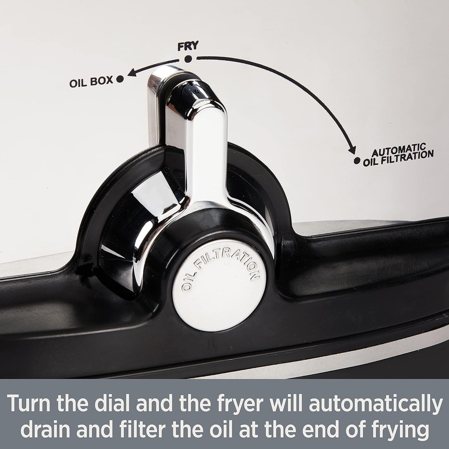 PATENTED OIL FILTRATION: Our deep fryer with oil filtration and basket provides automatic oil management, storing oil for reuse while keeping your kitchen free from overwhelming smells
