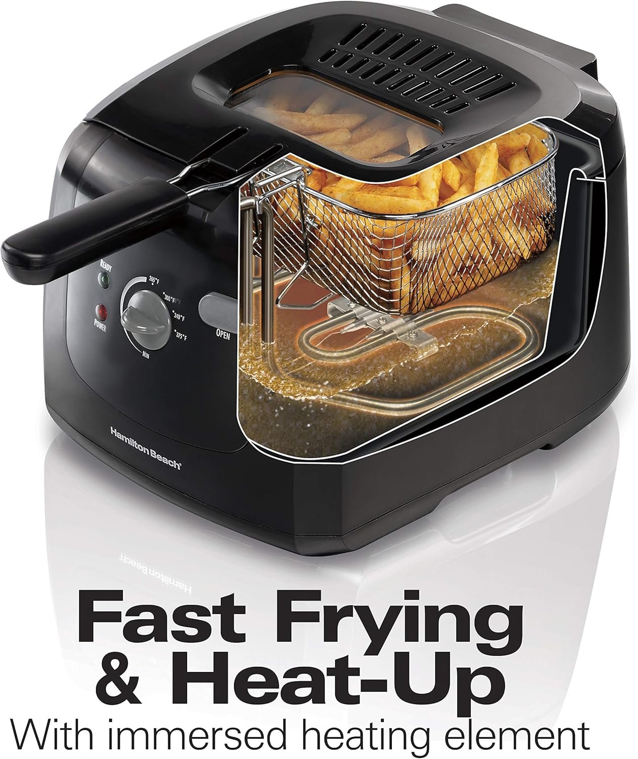 FAST FRYING & HEAT-UP: Immersed heating element in this professional style deep fryer heats up oil and cooks food faster so there’s less wait time.