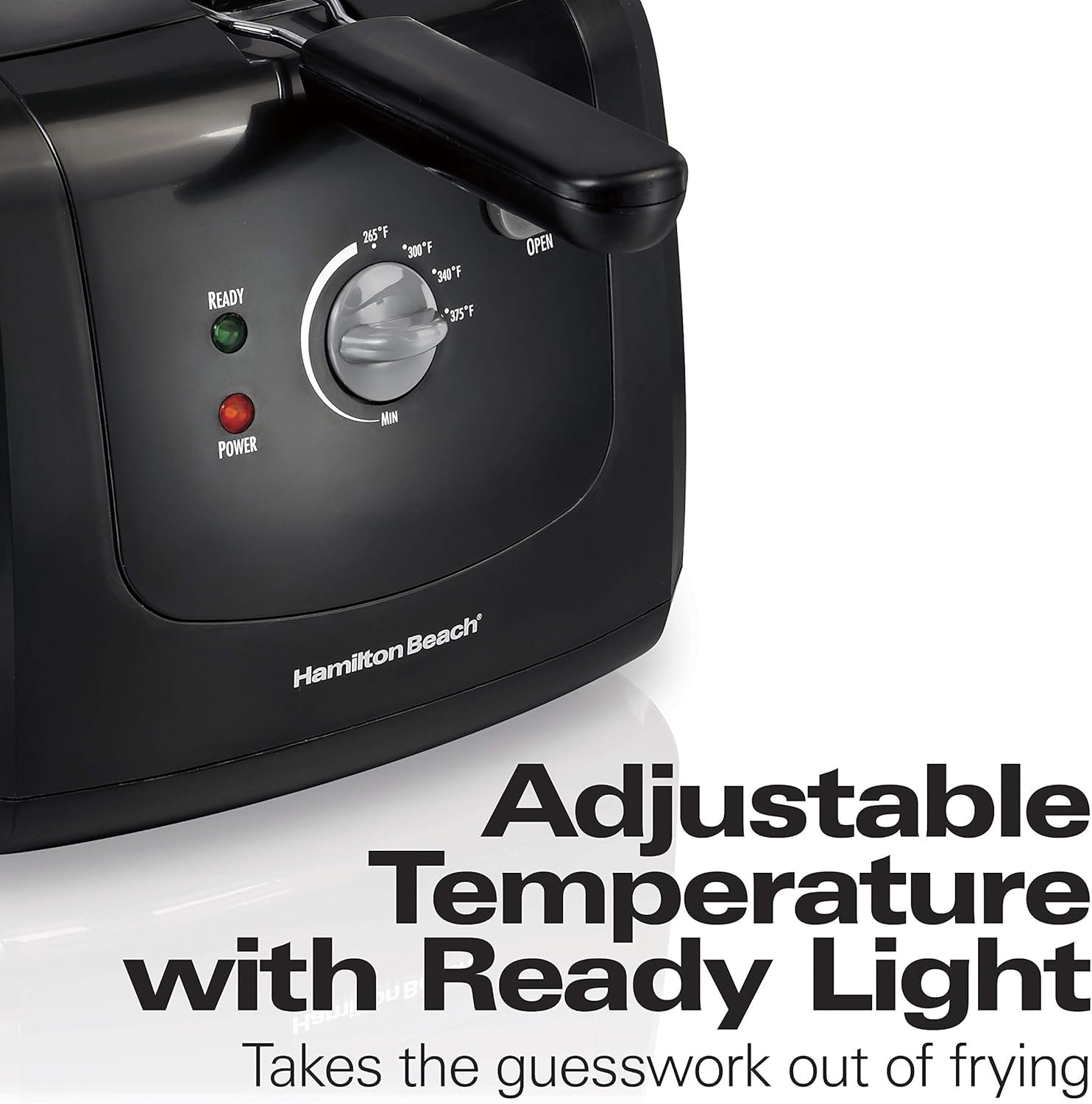 ADJUSTABLE TEMPERATURE WITH READY LIGHT: Take the guesswork out of frying: adjustable temperature and ready lights let you know when the oil is ready.