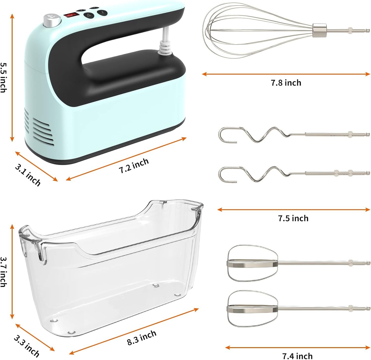 9-Speed Digital Hand Mixer Electric, 400W Powerful DC Motor, Baking Mixer Handheld with Snap-On Storage Case, Touch Button, Turbo Boost, Dough Hooks, Whisk (Ice Blue)