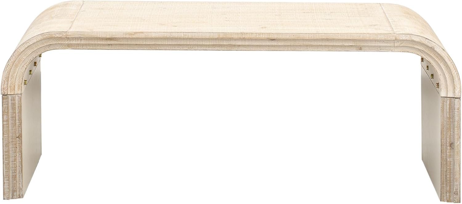 Bellemave Modern Coffee Table with Curved Art Deco Design Center Sofa Table Minimalist Cocktail Wooden Table for Living Room, Natural Wood Wash