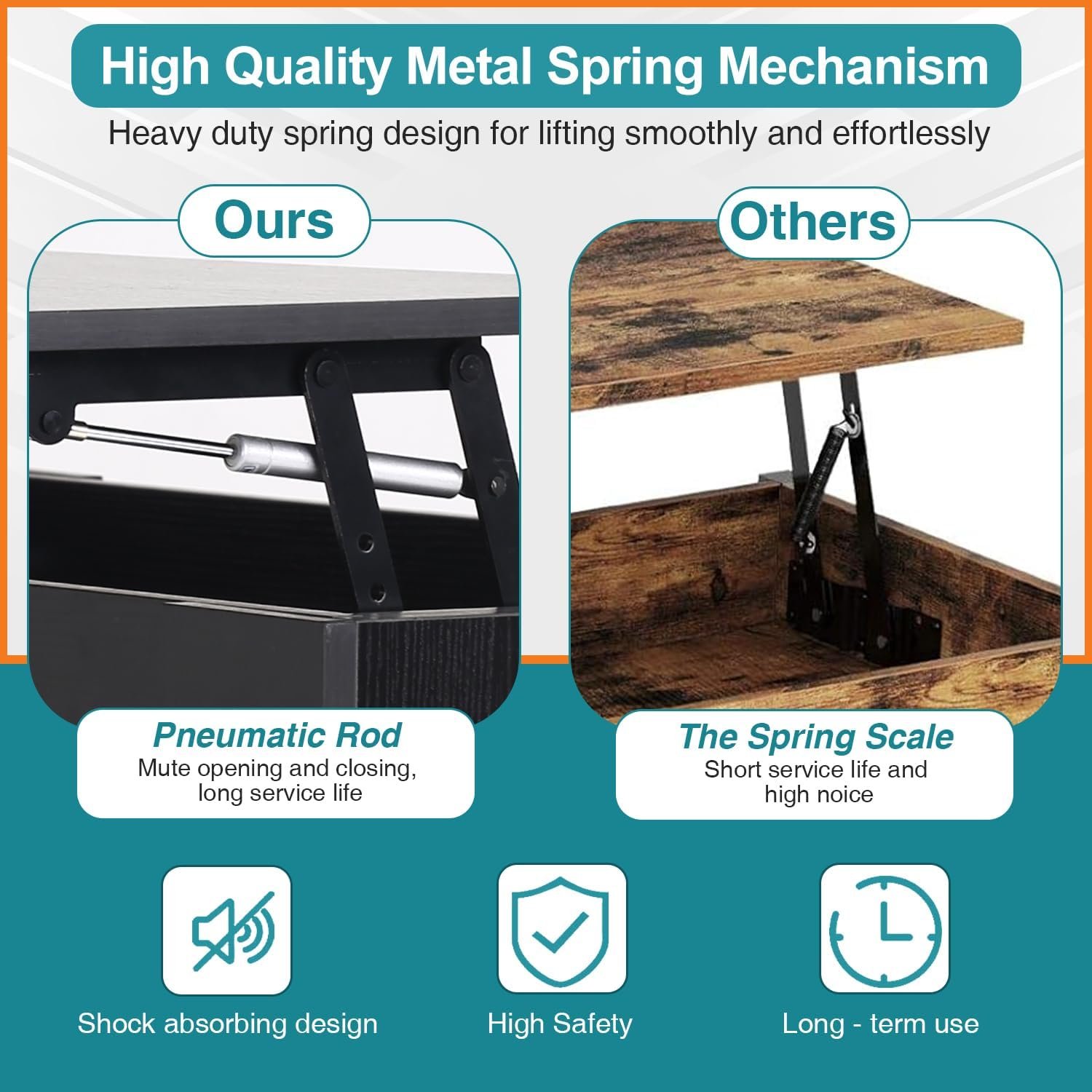 1. the whole coffee table is made of CARB certified P2 grade MDF, reliable material for your peace of mind.2. changing the spring lifter to a hydraulic unit, eliminating the hassle of installing extension springs;3. Elevated coffee table allows you to raise the tabletop to the ideal height for typing, dining or entertaining, bringing you a more enjoyable experience.4. with a clear installation manual to make installation easier.