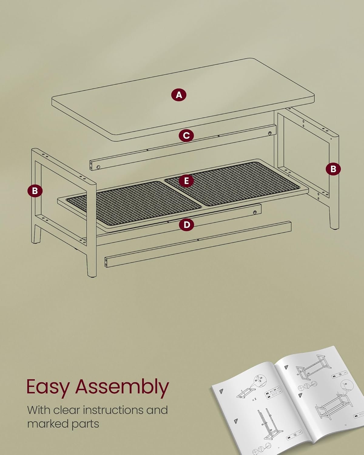 Be the first to review “VASAGLE 2-Tier Coffee Table for Living Room, Living Room Table Rectangular Center Table, with PVC Rattan Storage Shelf, Rounded Corners, Easy Assembly, Boho Style, Ash Black ULCT240B21”