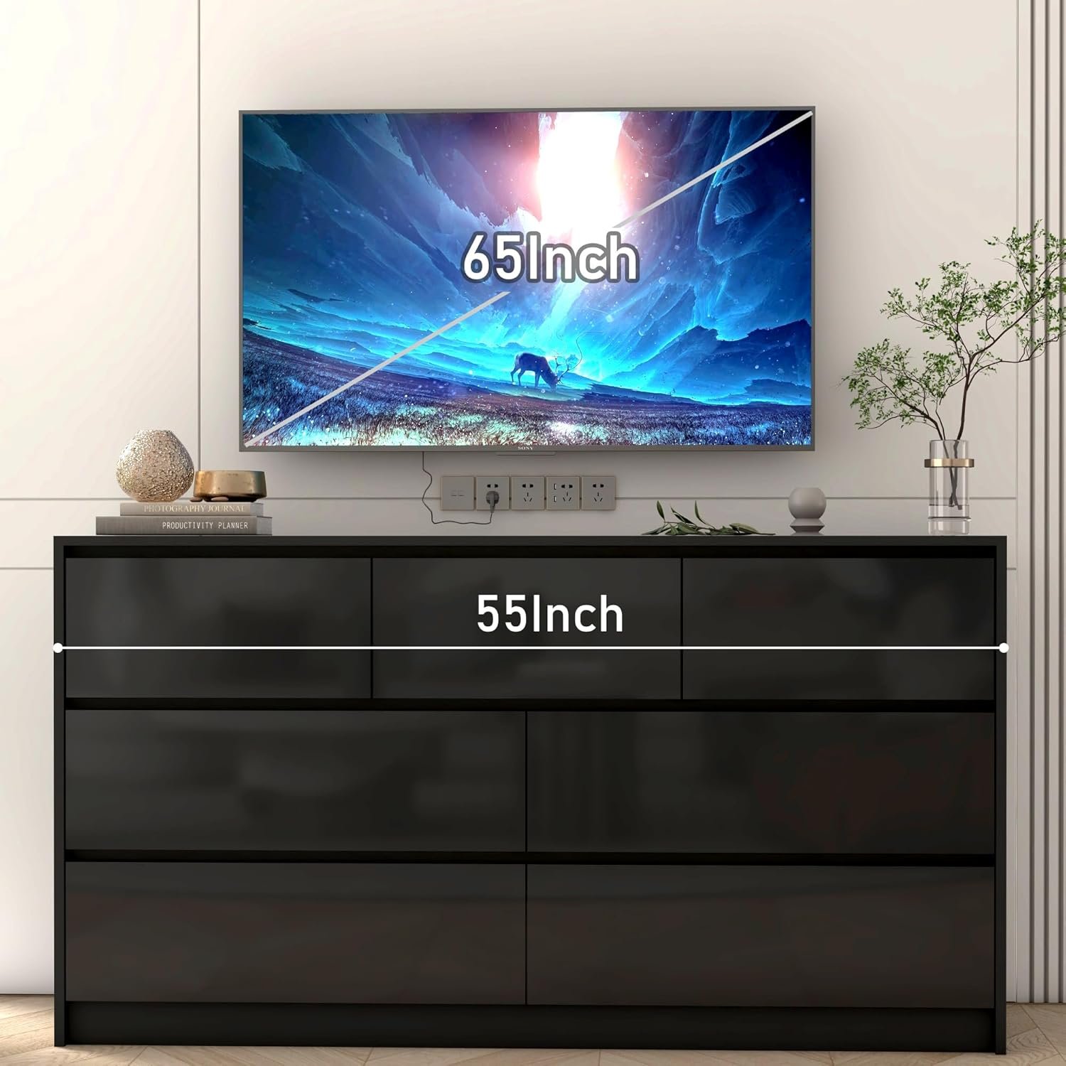【Multiple uses】This large chest of drawers has 7 deep and wide drawers, not only can store clothes, but its 55-inch width can also be used as a TV stand for a 60/65-inch TV. It can be placed in the living room, bedroom, hallway, entryway, cloakroom, dressing room, kids’ bedrooms.